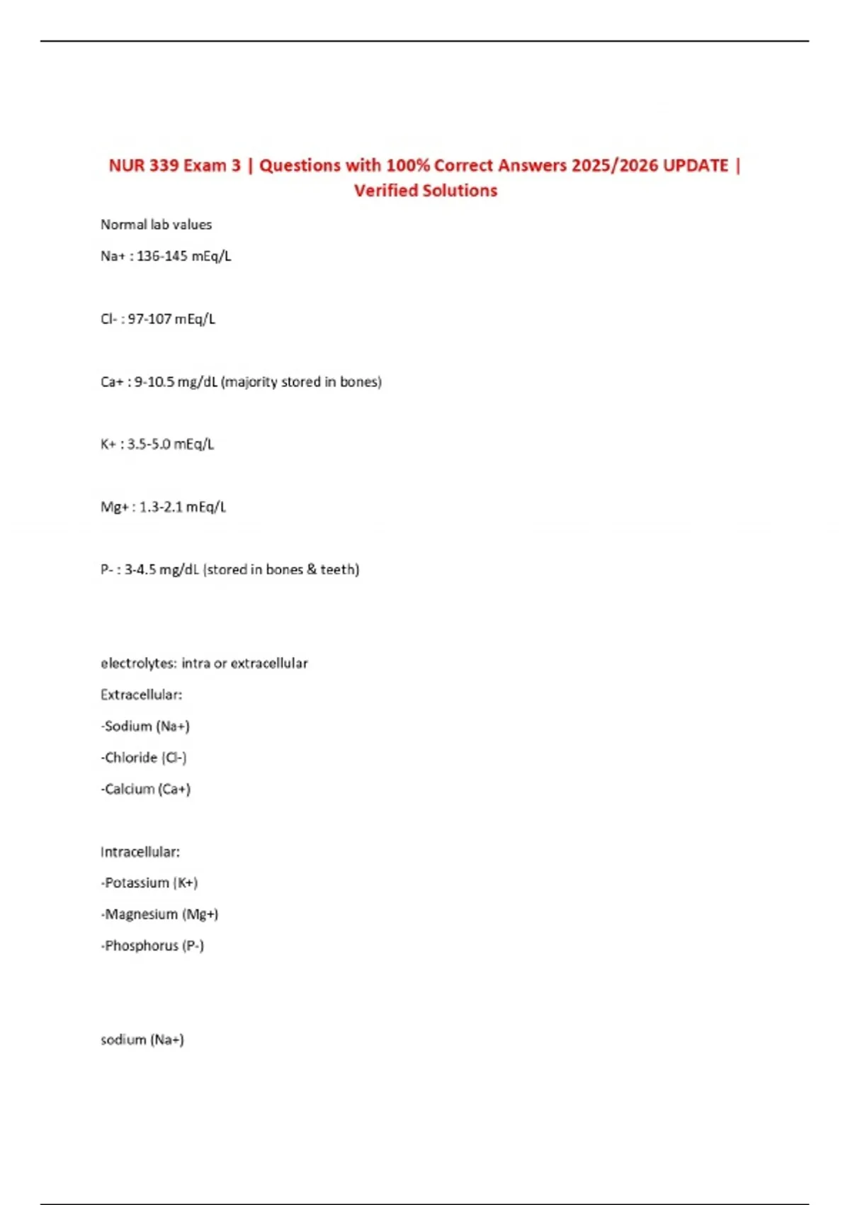 NUR 339 Exam 3 | Questions with 100% Correct Answers 2025/2026 UPDATE | Verified Solutions