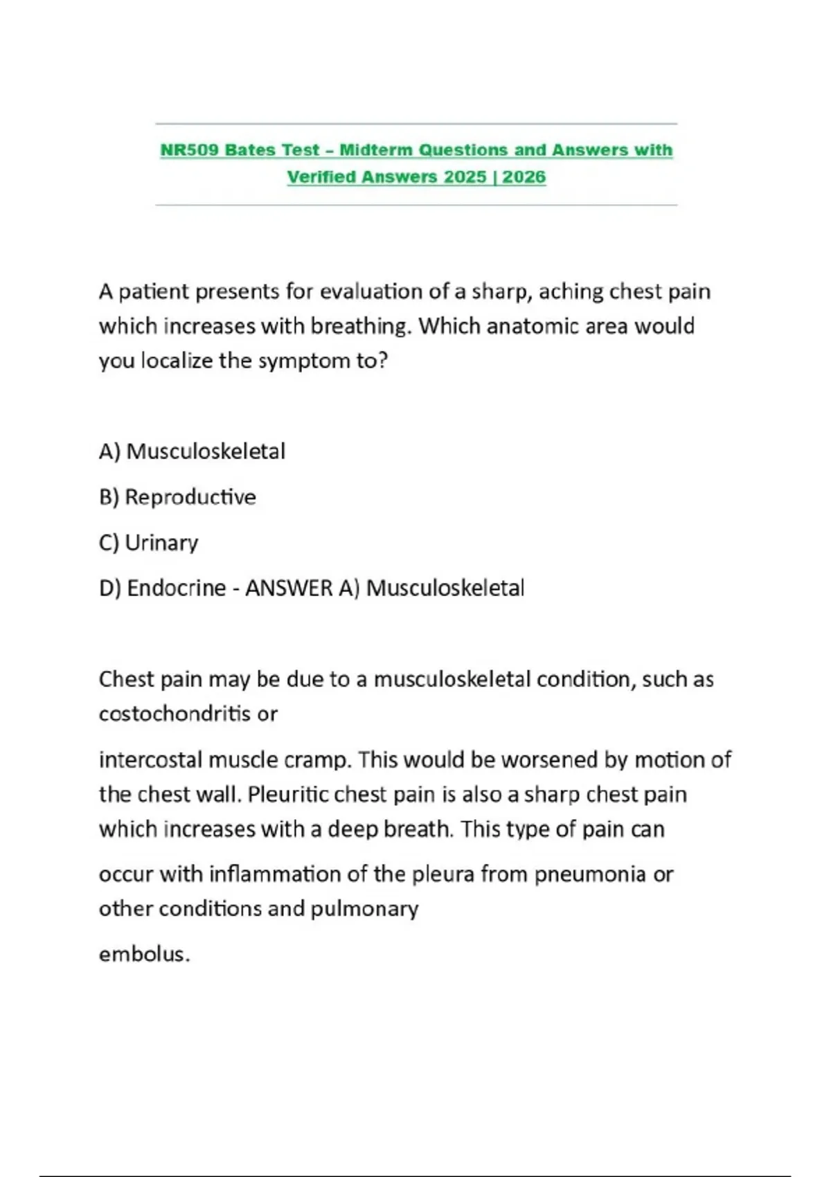 NR509 Bates Test – Midterm Questions and Answers with Verified Answers 2025 | 2026.