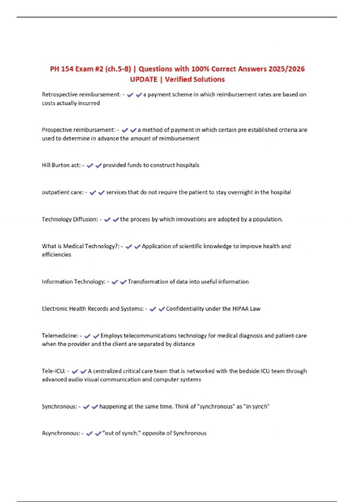 ph 154 exam 2 ch5 8 questions with 100 corr