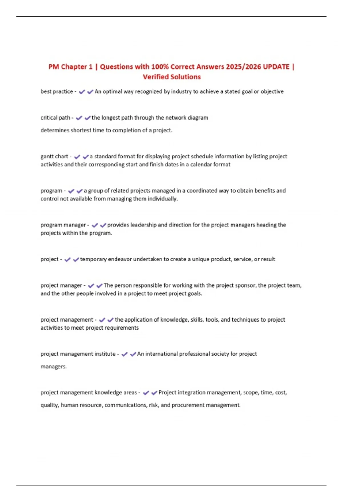 PM Chapter 1 | Questions with 100% Correct Answers 2025/2026 UPDATE | Verified Solutions