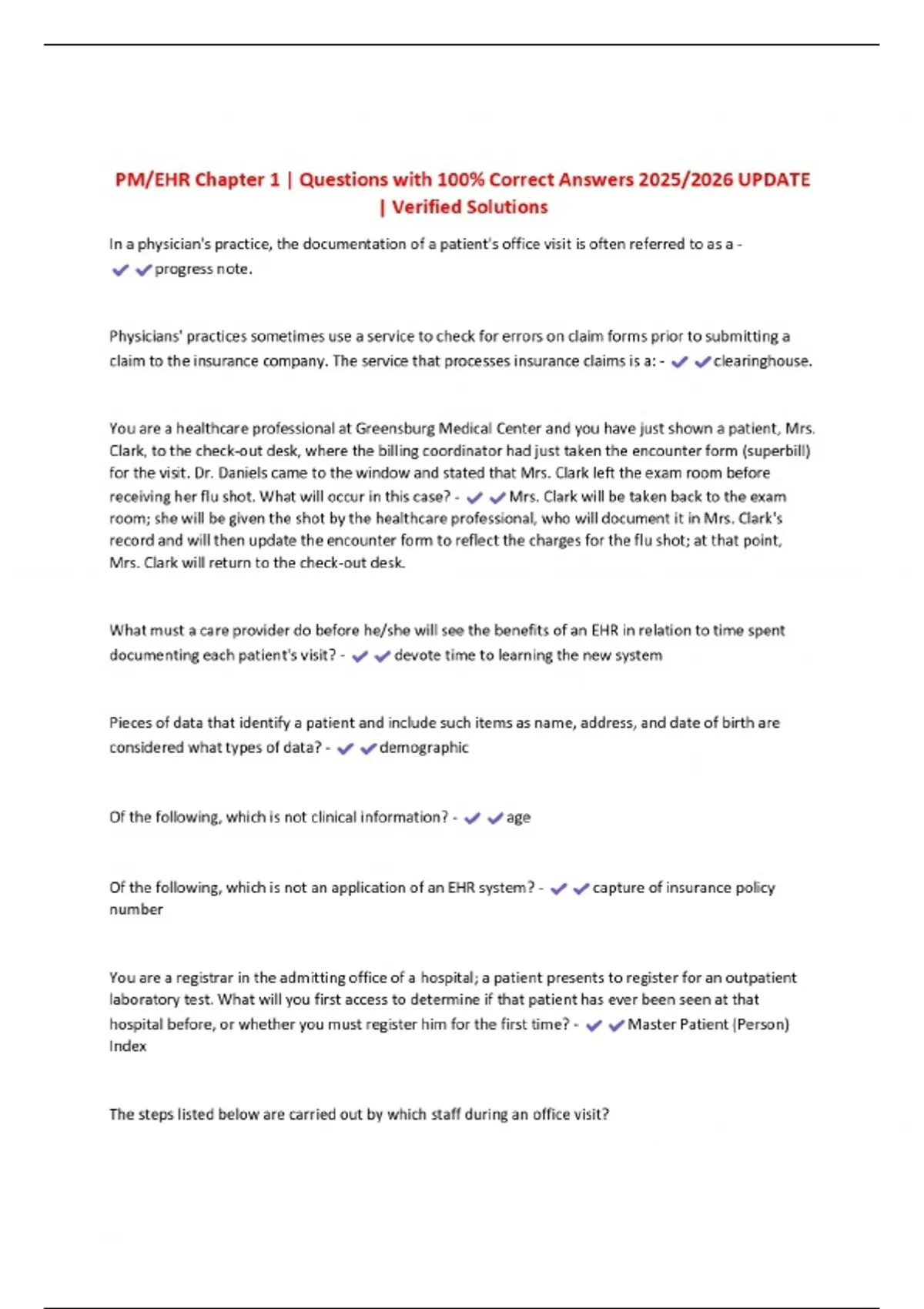PM/EHR Chapter 1 | Questions with 100% Correct Answers 2025/2026 UPDATE | Verified Solutions