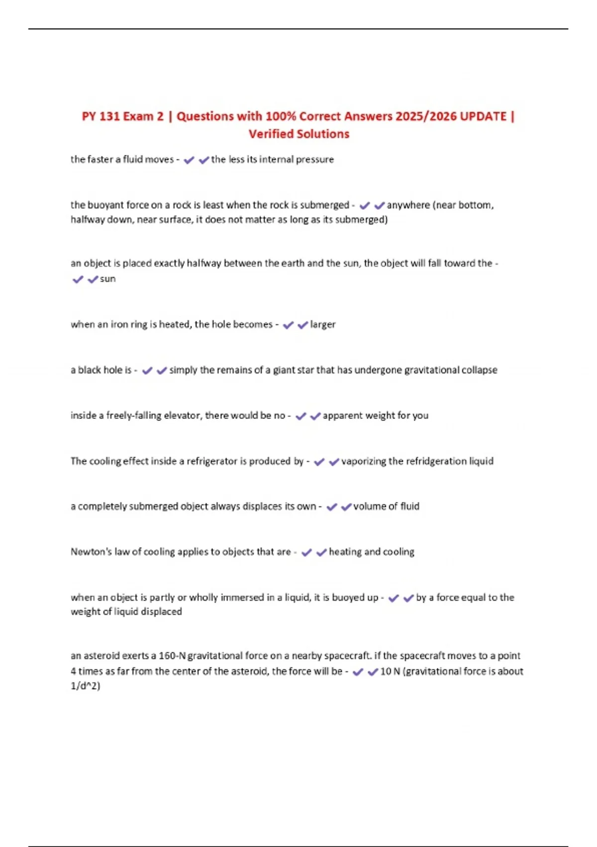 PY 131 Exam 2 | Questions with 100% Correct Answers 2025/2026 UPDATE | Verified Solutions