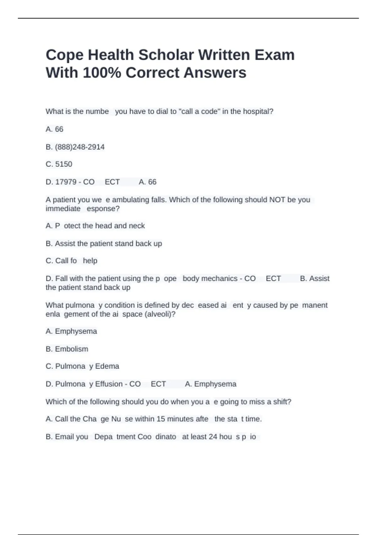 Cope Health Scholar Written Exam