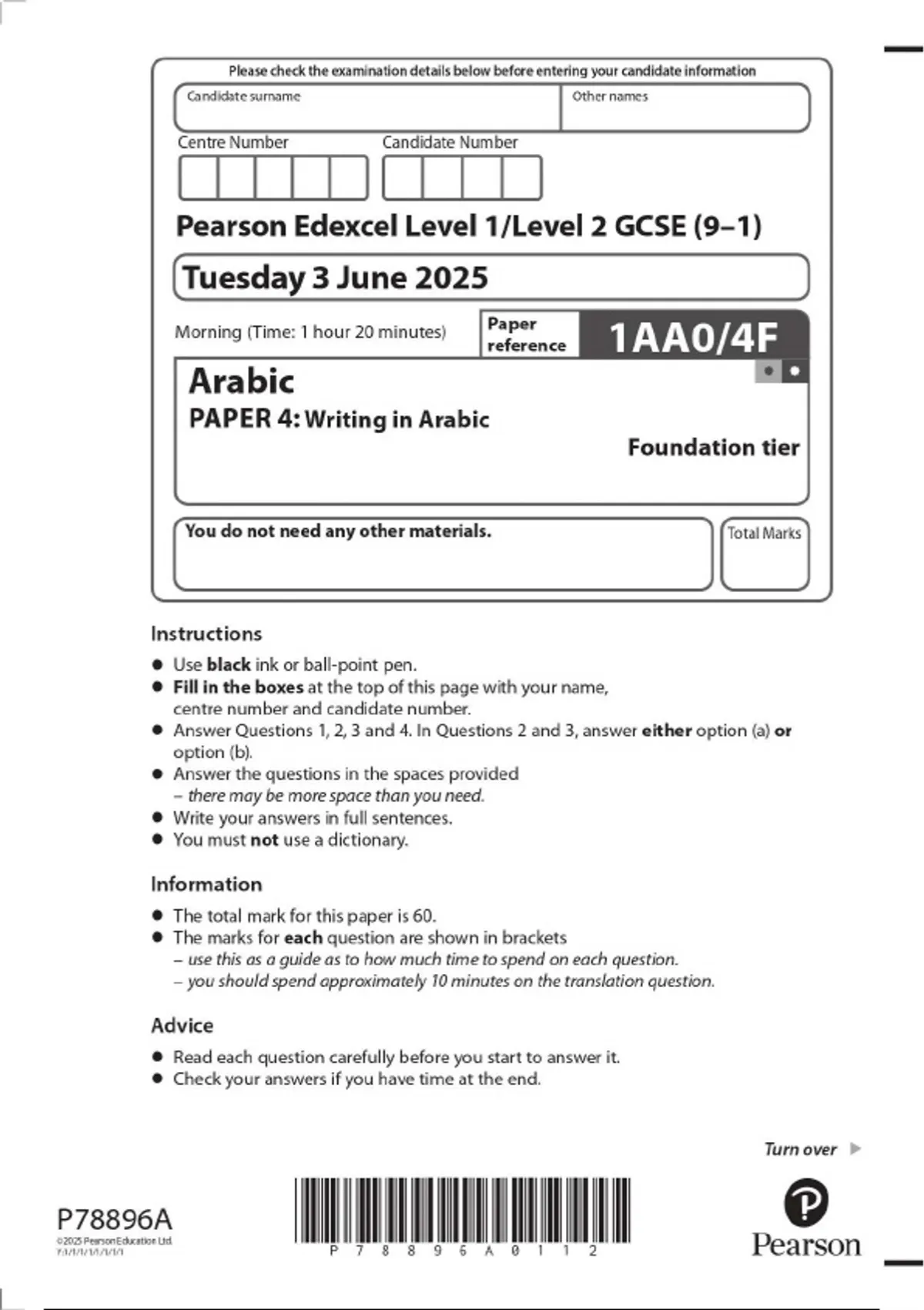 2025 Pearson Edexcel Level 1/Level 2 GCSE. 1AA0/4F Arabic PAPER 4: Writing in Arabic 2025 Pearson Edexcel Level 1/Level 2 GCSE. 1AA0/4F Arabic PAPER 4: Writing in Arabic 2025 Pearson Edexcel Level 1/Level 2 GCSE. 1AA0/4F Arabic PAPER 4: Writing in Arabic 2025 Pearson Edexcel Level 1/Level 2 GCSE. 1AA0/4F Arabic PAPER 4: Writing in Arabic