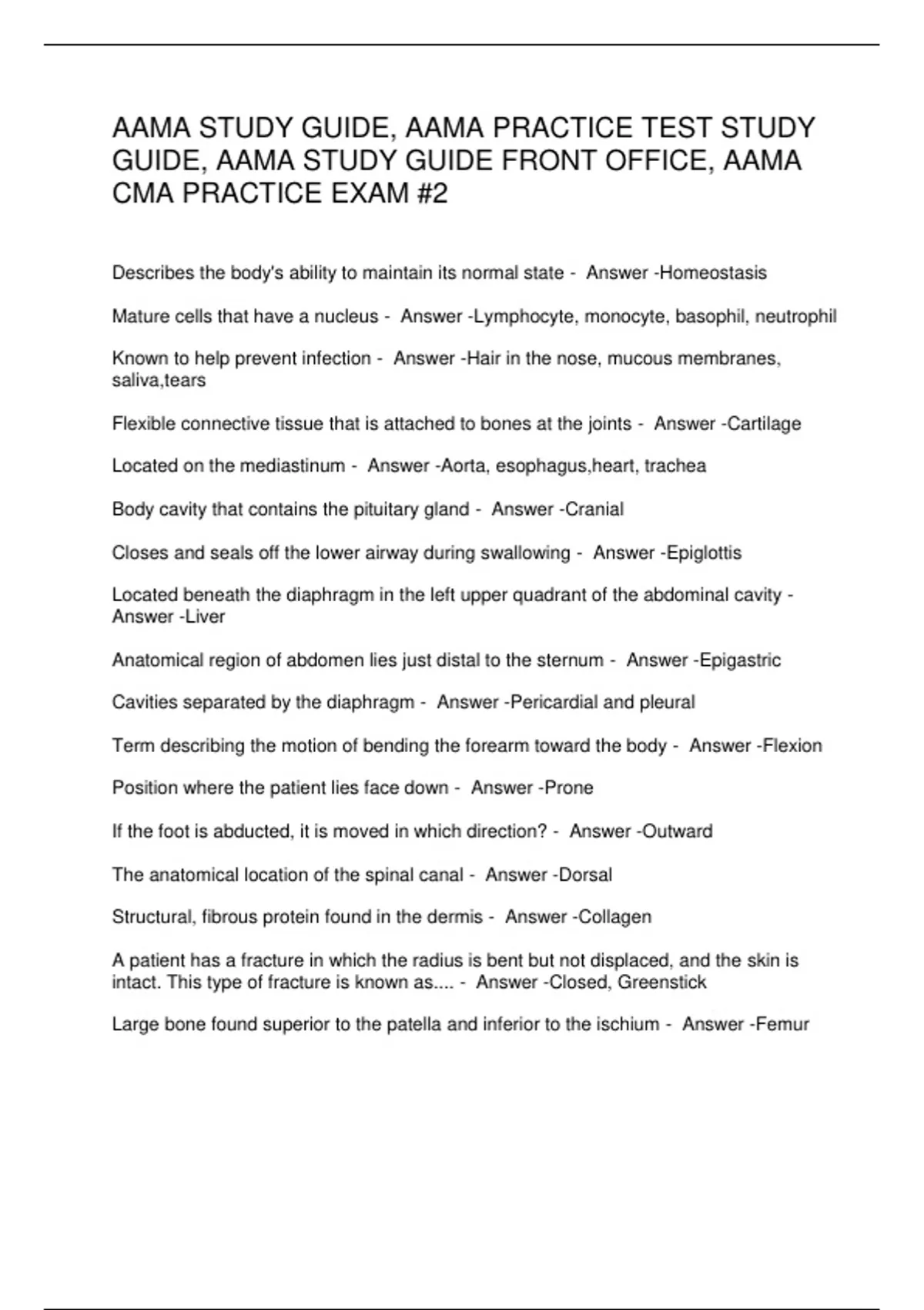 AAMA STUDY GUIDE, AAMA PRACTICE TEST STUDY GUIDE, AAMA STUDY GUIDE FRONT OFFICE, AAMA CMA PRACTICE EXAM #2