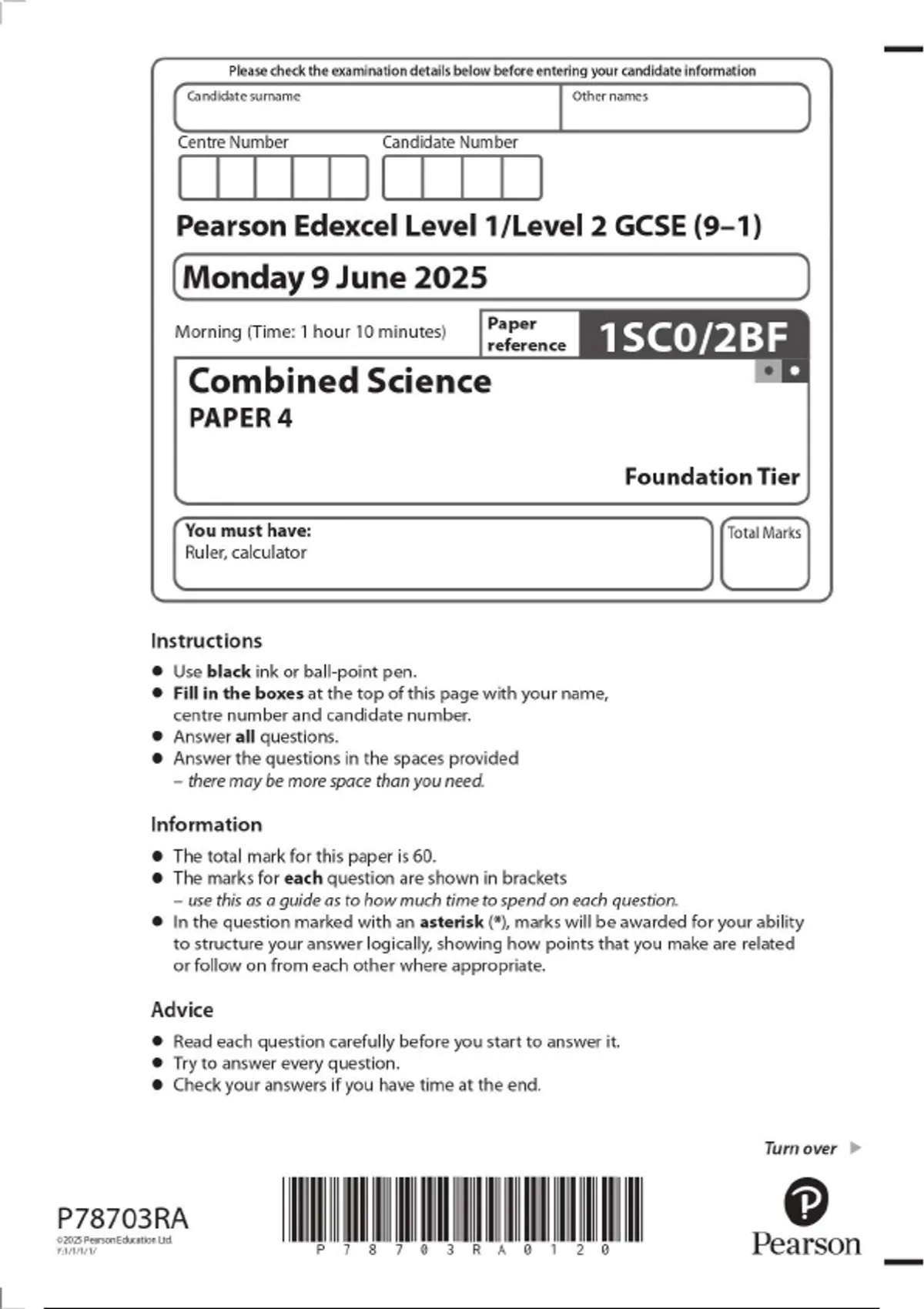 2025 Pearson Edexcel Level 1/Level 2 GCSE . 1SC0/2BF Combined Science PAPER 4 2025 Pearson Edexcel Level 1/Level 2 GCSE . 1SC0/2BF Combined Science PAPER 4 Foundation Tier