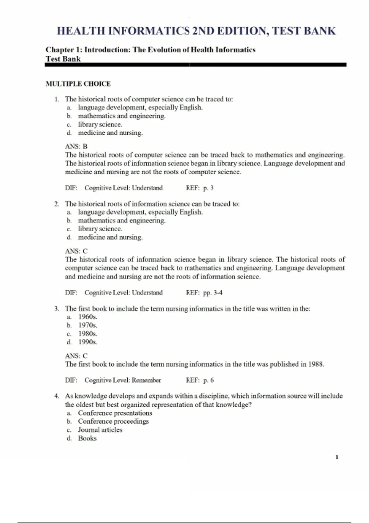 TEST BANK FOR HEALTH INFORMATICS 2ND EDITION