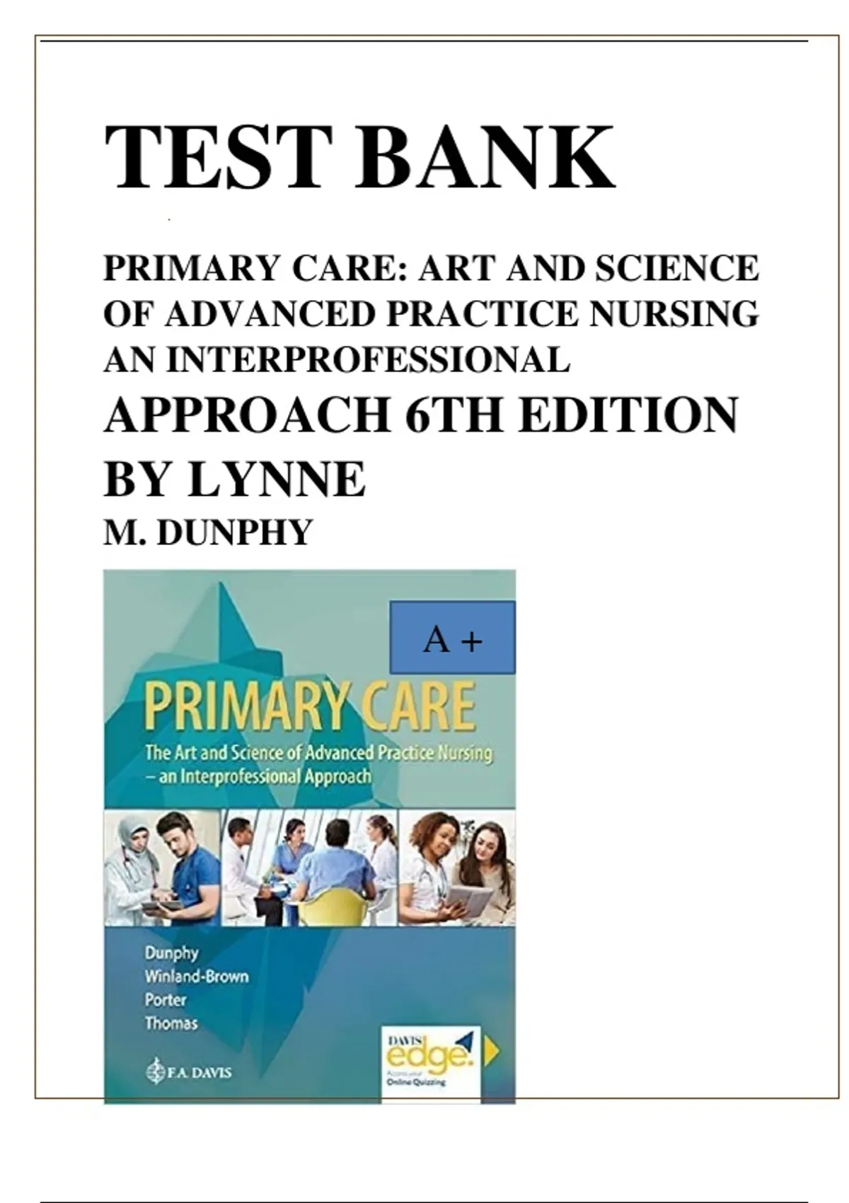 , Primary Care: Art and Science of Advanced Practice Nursing An Inter-professionalApproach 6th Edition Dunphy