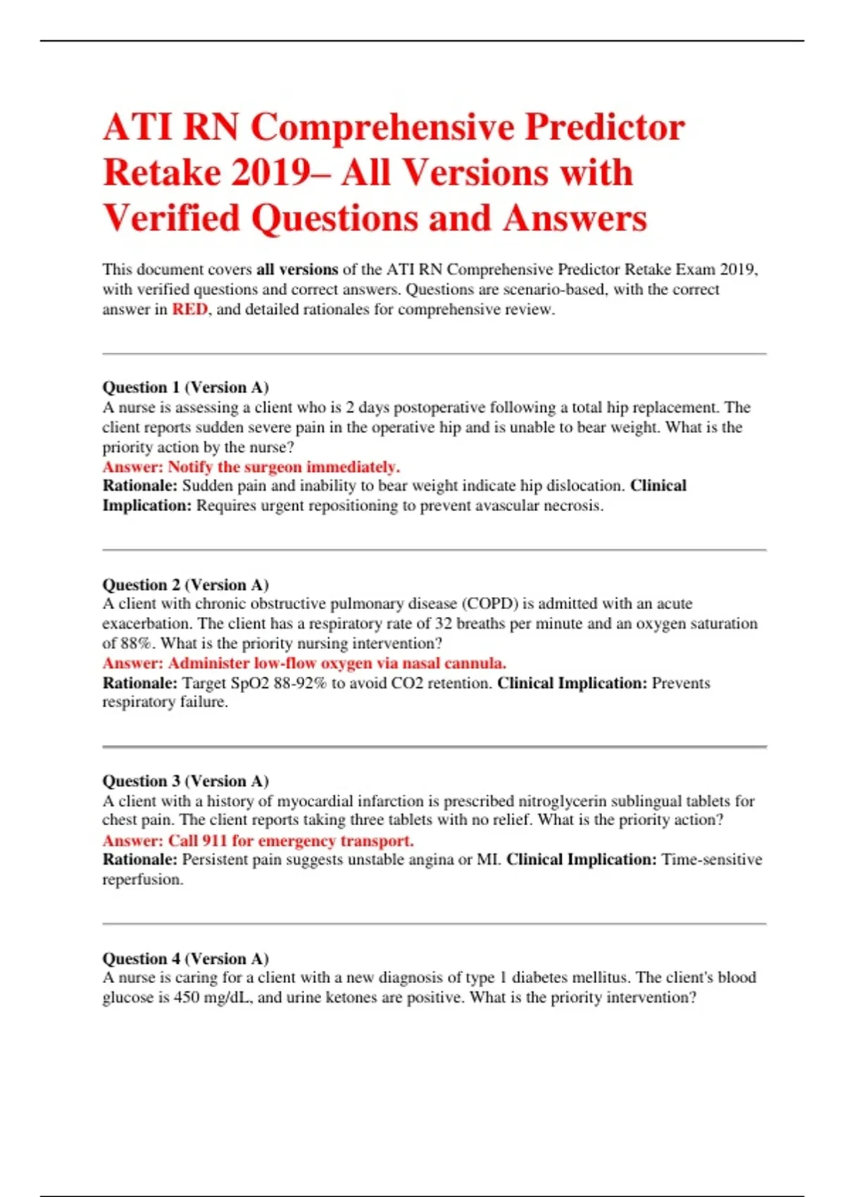 This document covers all versions of the ATI RN Comprehensive Predictor Retake Exam 2019,