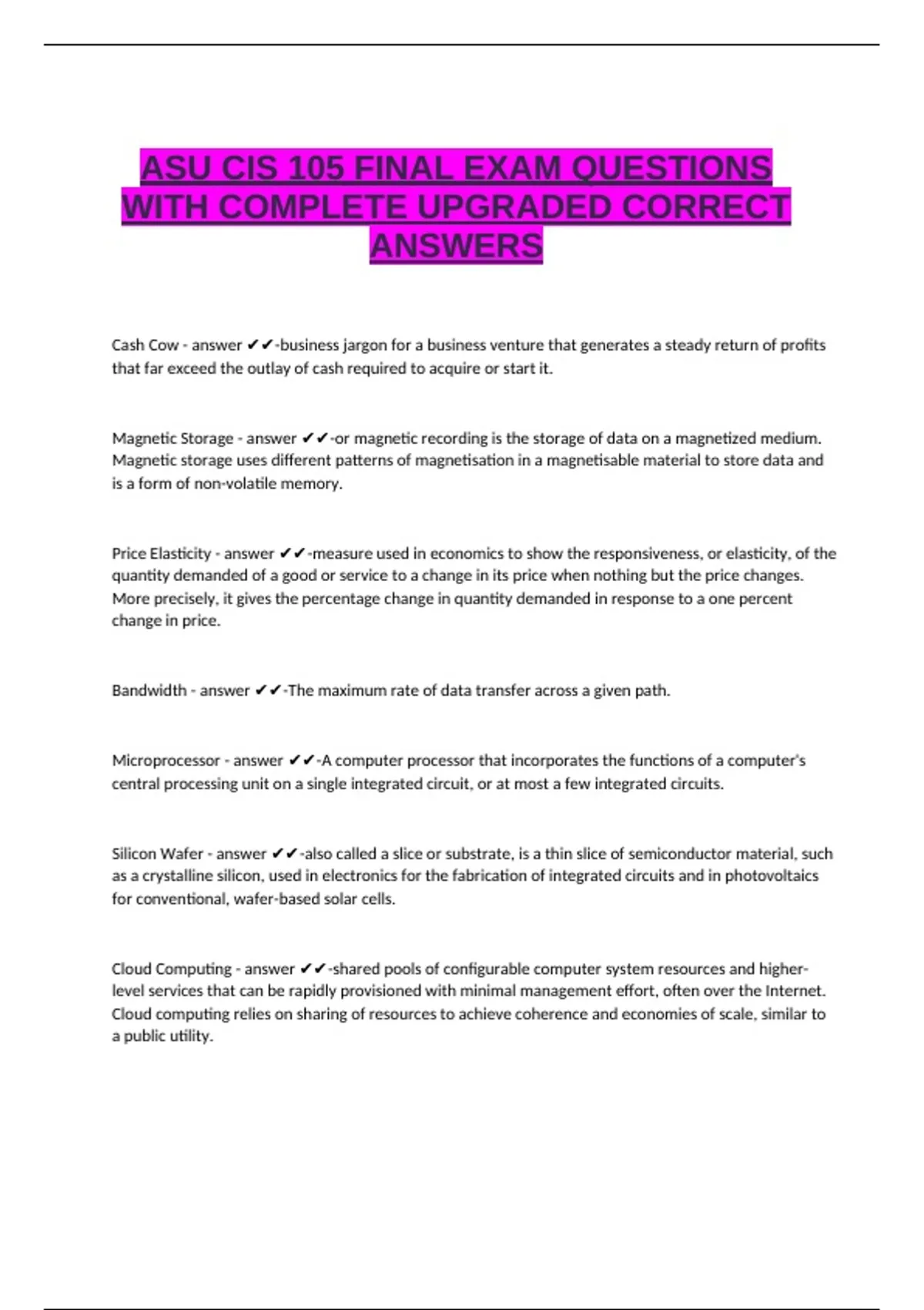 ASU CIS 105 FINAL EXAM QUESTIONS WITH COMPLETE UPGRADED CORRECT ANSWERS.