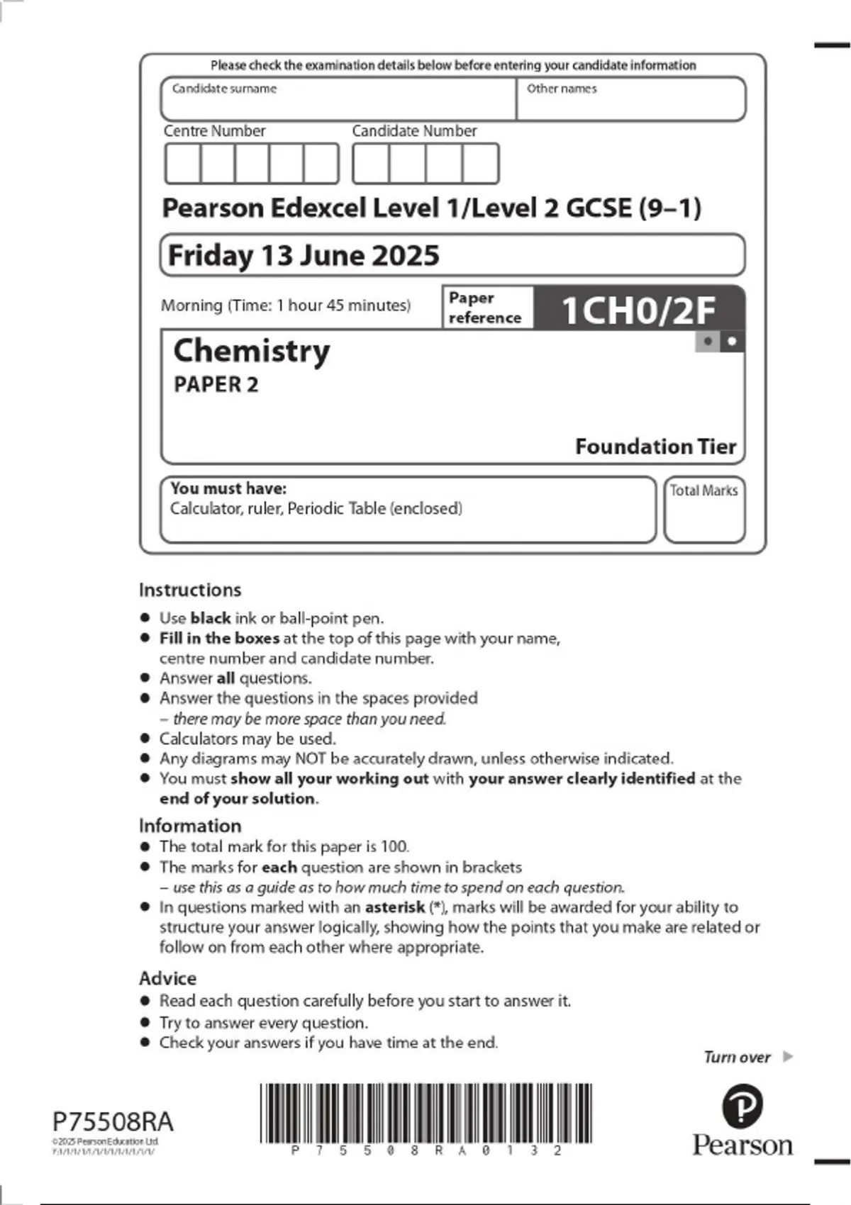 2025 Pearson Edexcel Level 1/Level 2 GCSE. 1CH0/2F Chemistry PAPER 2 Foundation Tier 2025 Pearson Edexcel Level 1/Level 2 GCSE. 1CH0/2F Chemistry PAPER 2 Foundation Tier 2025 Pearson Edexcel Level 1/Level 2 GCSE. 1CH0/2F Chemistry PAPER 2 Foundation Tier 2025 Pearson Edexcel Level 1/Level 2 GCSE. 1CH0/2F Chemistry PAPER 2 Foundation Tier