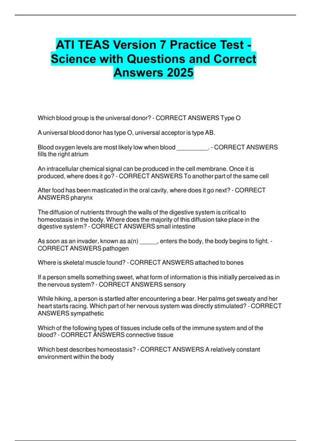 ATI TEAS Version 7 Practice Test - Science with Questions and Correct Answers 2025.