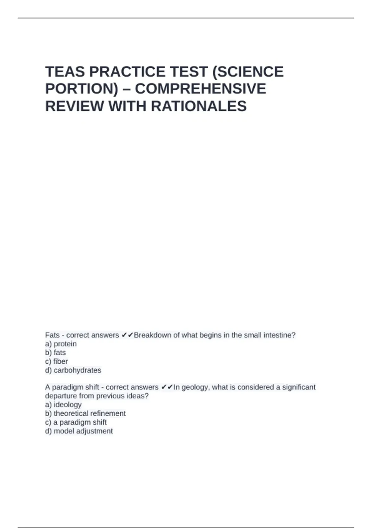 TEAS PRACTICE TEST (SCIENCE