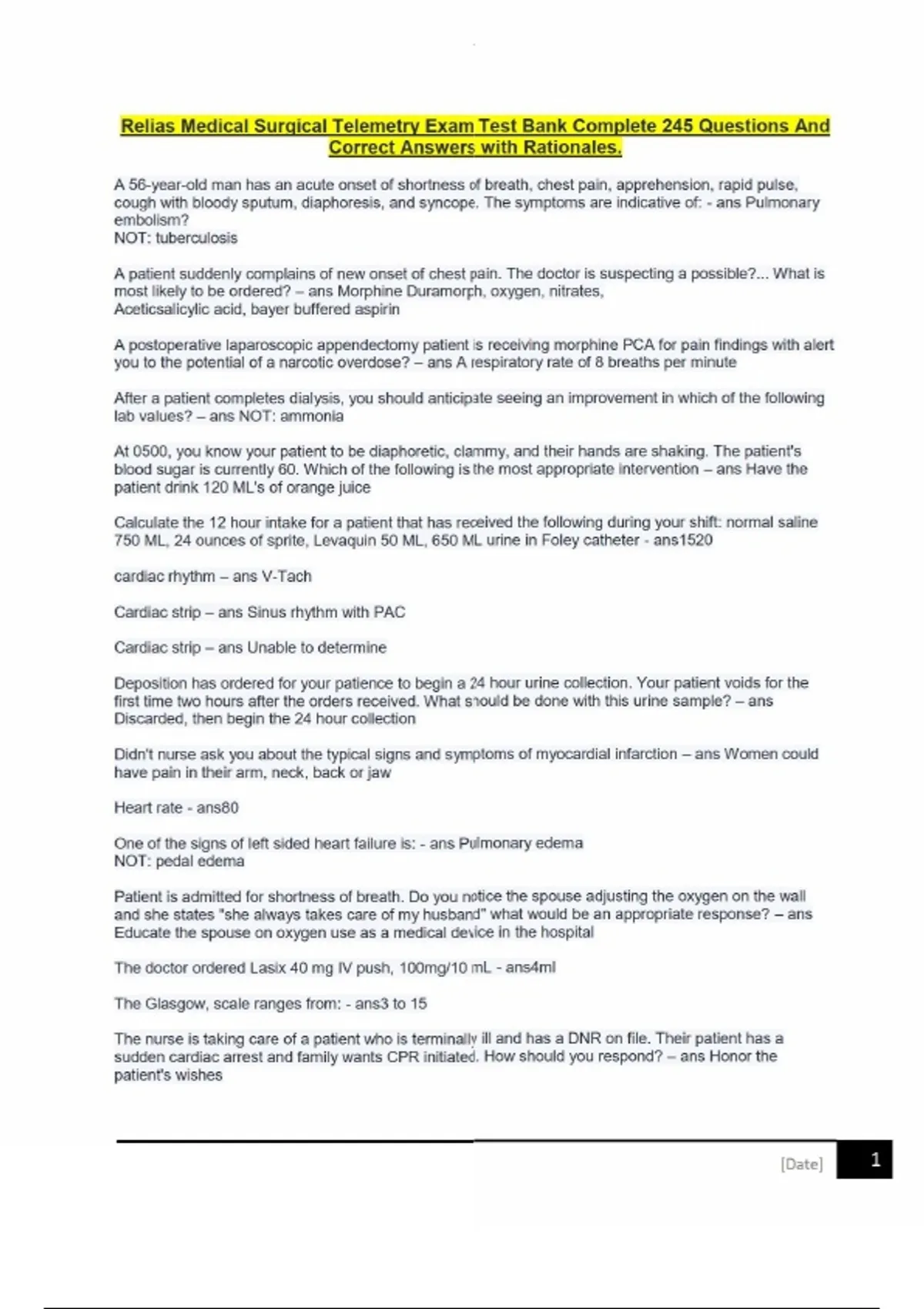 Relias Medical Surgical Telemetry Exam Test Bank Complete 245 Questions And Correct Answers with Rationales.Relias Medical Surgical Telemetry Exam Test Bank Complete 245 Questions And Correct Answers with Rationales.