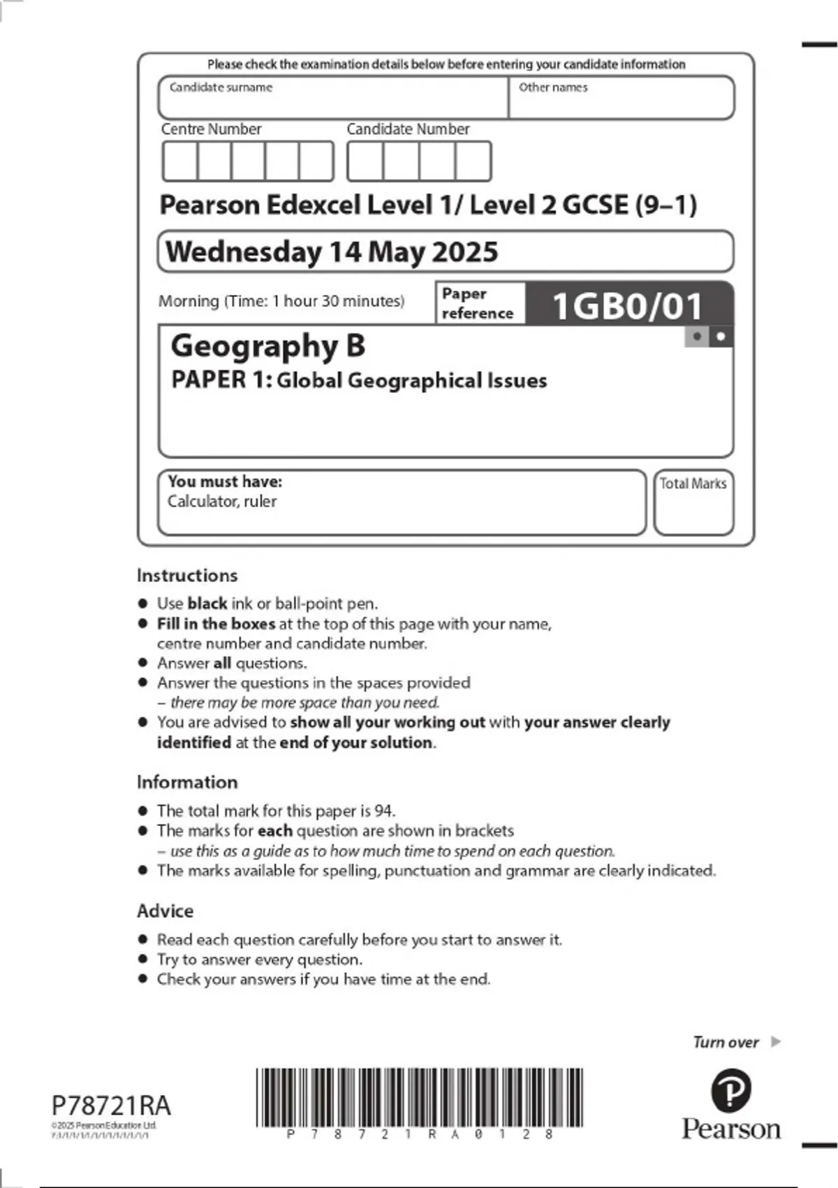 2025 Pearson Edexcel Level 1/ Level 2 GCSE (9–1) Geography B PAPER 1: Global Geographical Issues 1GB0/01 2025 Pearson Edexcel Level 1/ Level 2 GCSE (9–1) Geography B PAPER 1: Global Geographical Issues 1GB0/01