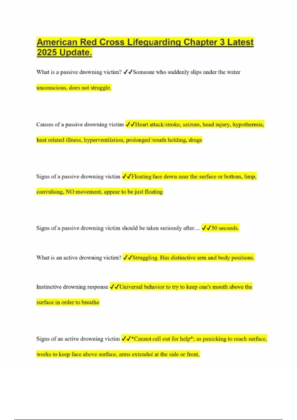 American Red Cross Lifeguarding Chapter 3 Latest 2025 Update.