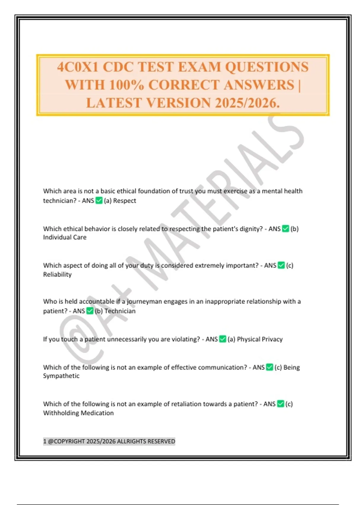 4C0X1 CDC TEST EXAM QUESTIONS WITH 100% CORRECT ANSWERS | LATEST VERSION 2025/2026.