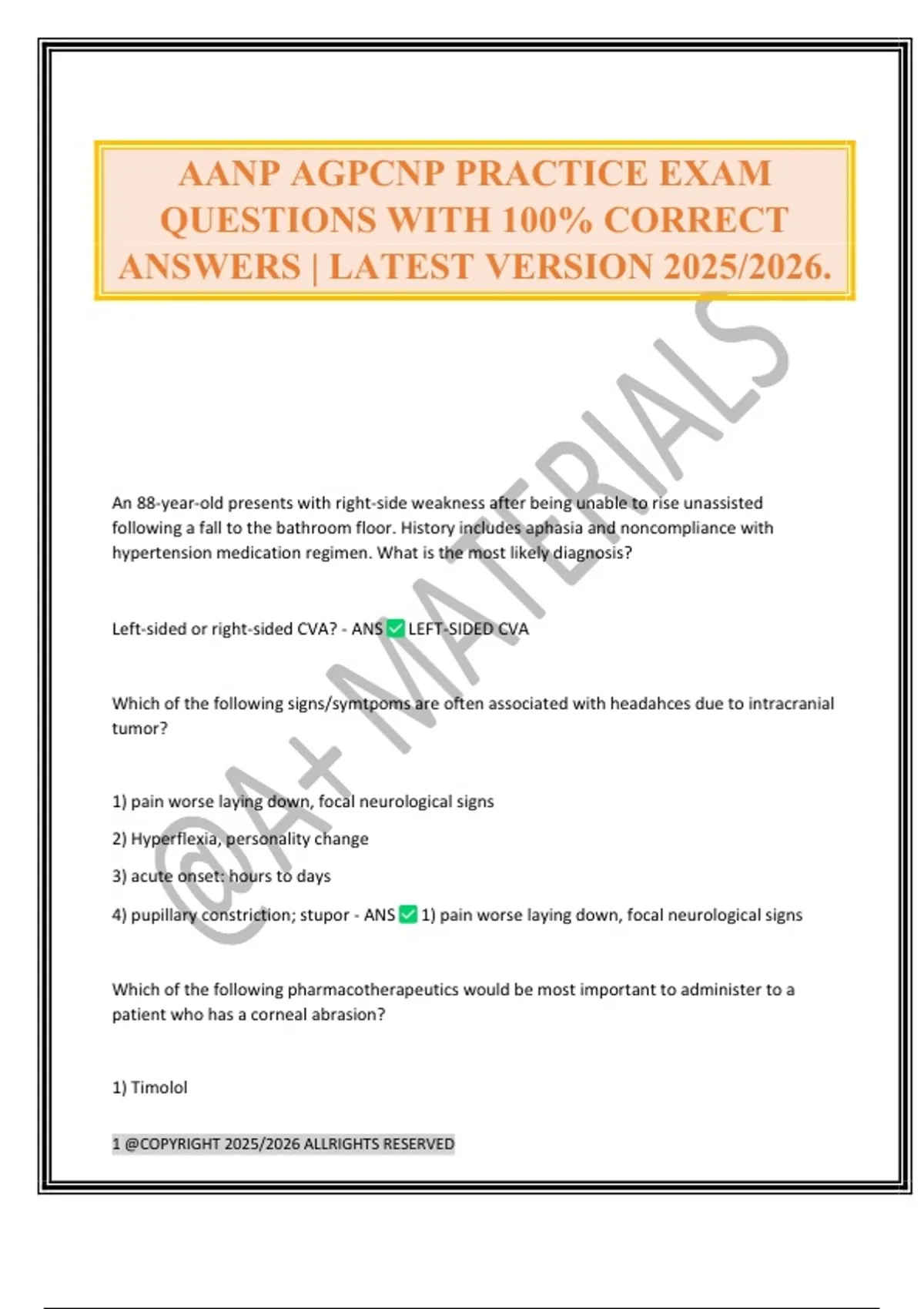 AANP AGPCNP PRACTICE EXAM QUESTIONS WITH 100% CORRECT ANSWERS | LATEST VERSION 2025/2026.