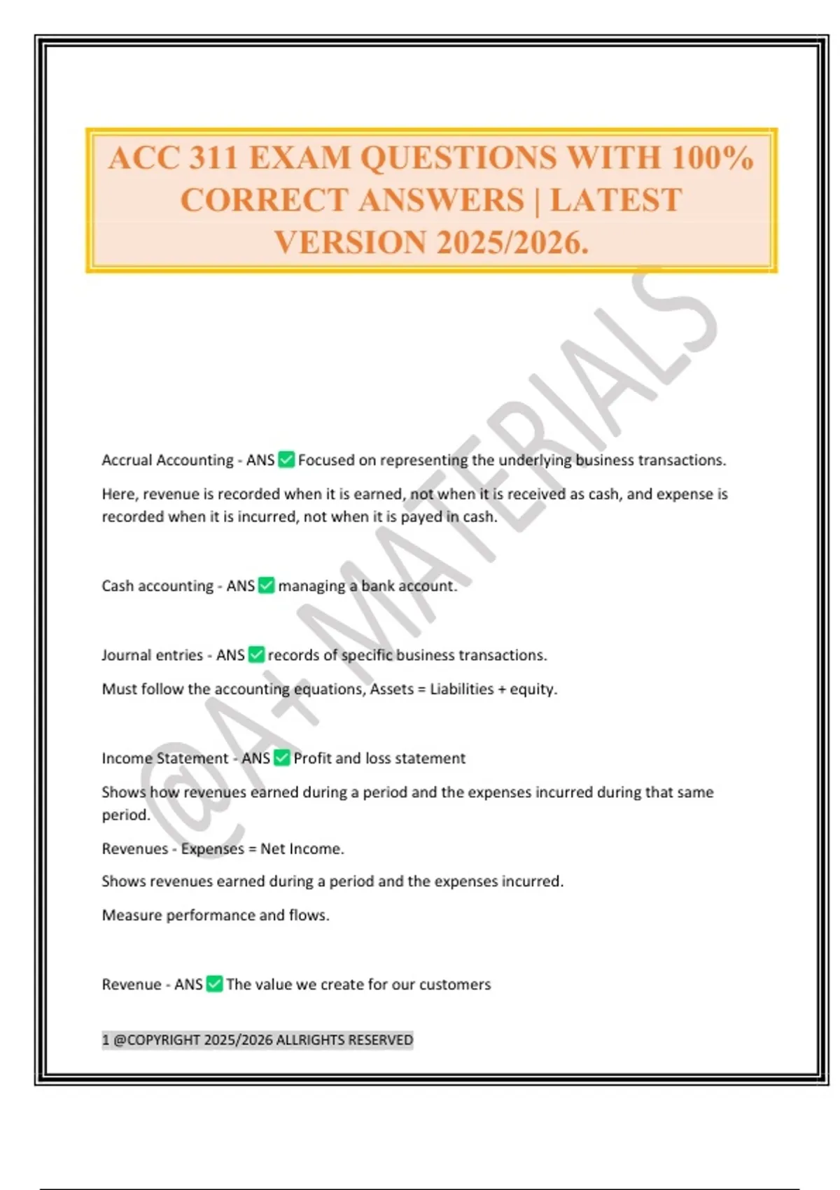 ACC 311 EXAM QUESTIONS WITH 100%