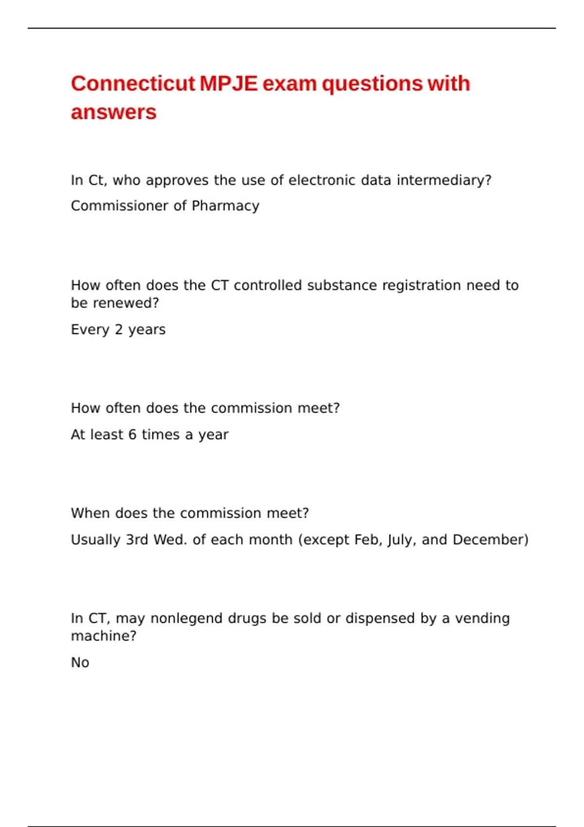 Connecticut MPJE exam questions with |\ |\ |\ |\ |\