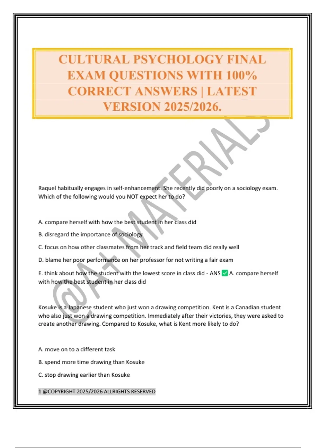 CULTURAL PSYCHOLOGY FINAL