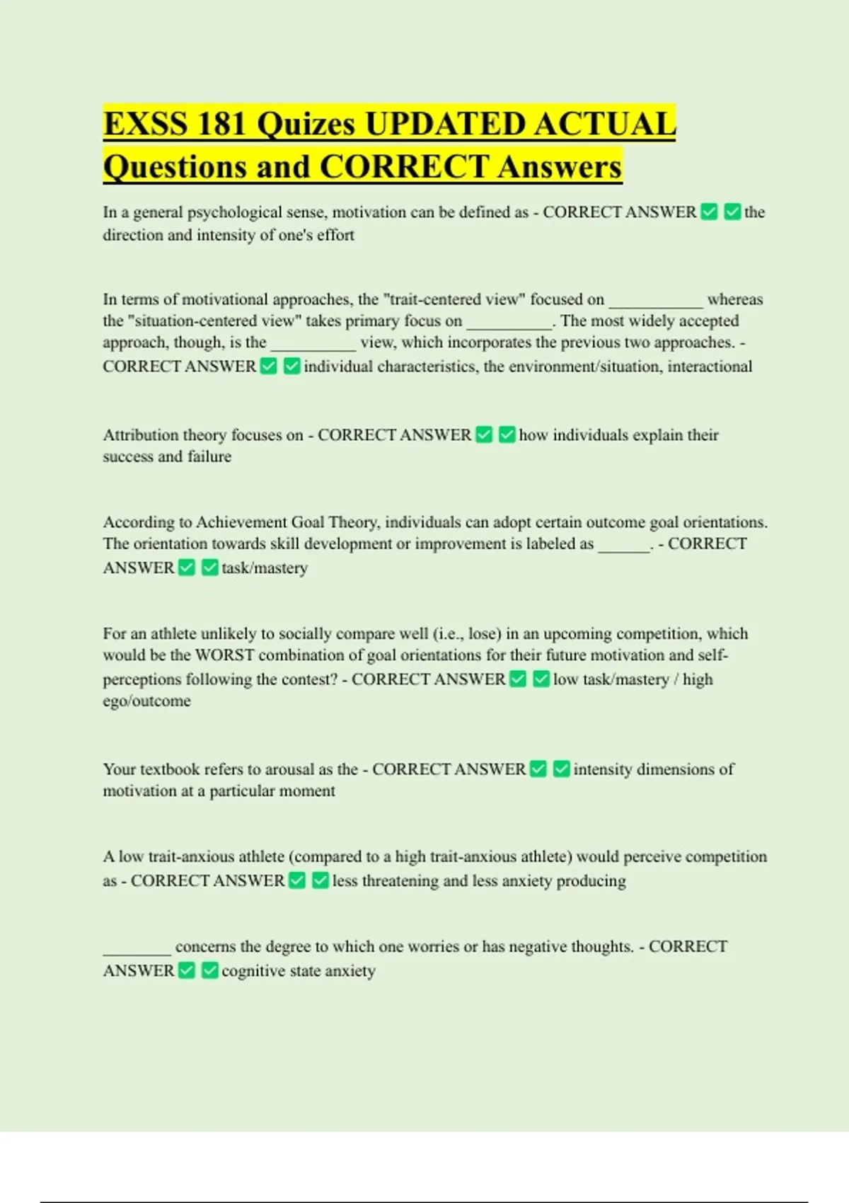 EXSS 181 Quizes UPDATED ACTUAL