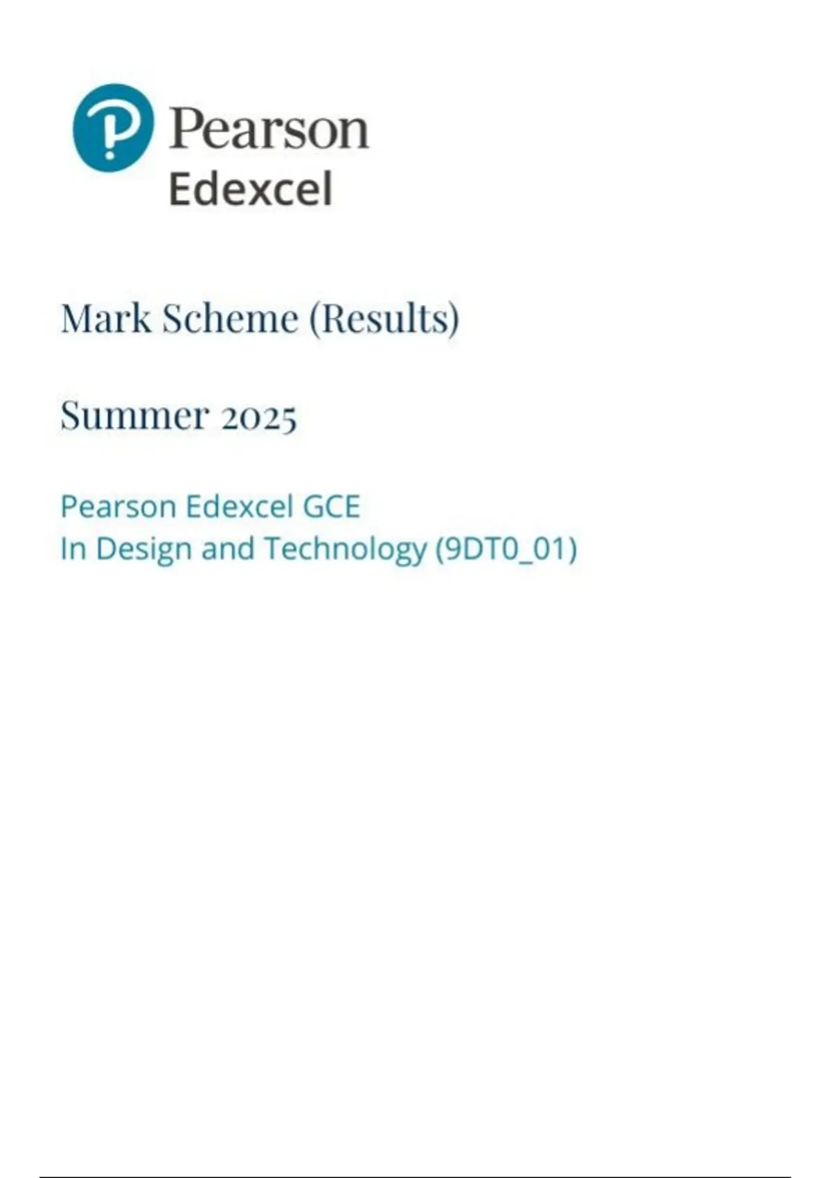 Pearson Edexcel a level Design Technology |final mark scheme|2025|9DT0/01|