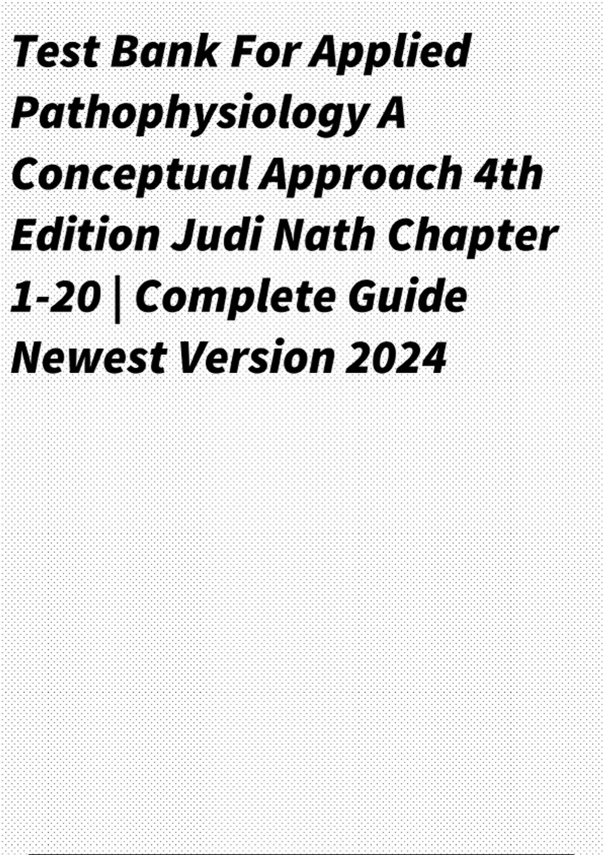 Access the complete Test Bank for Applied Pathophysiology: A Conceptual Approach, 4th Edition by Judi Nath and Carie Braun. Includes detailed chapter-by-chapter multiple-choice, true/false, and short-answer questions with verified answers—ideal for nursing, health science, and medical students preparing for exams and quizzes.