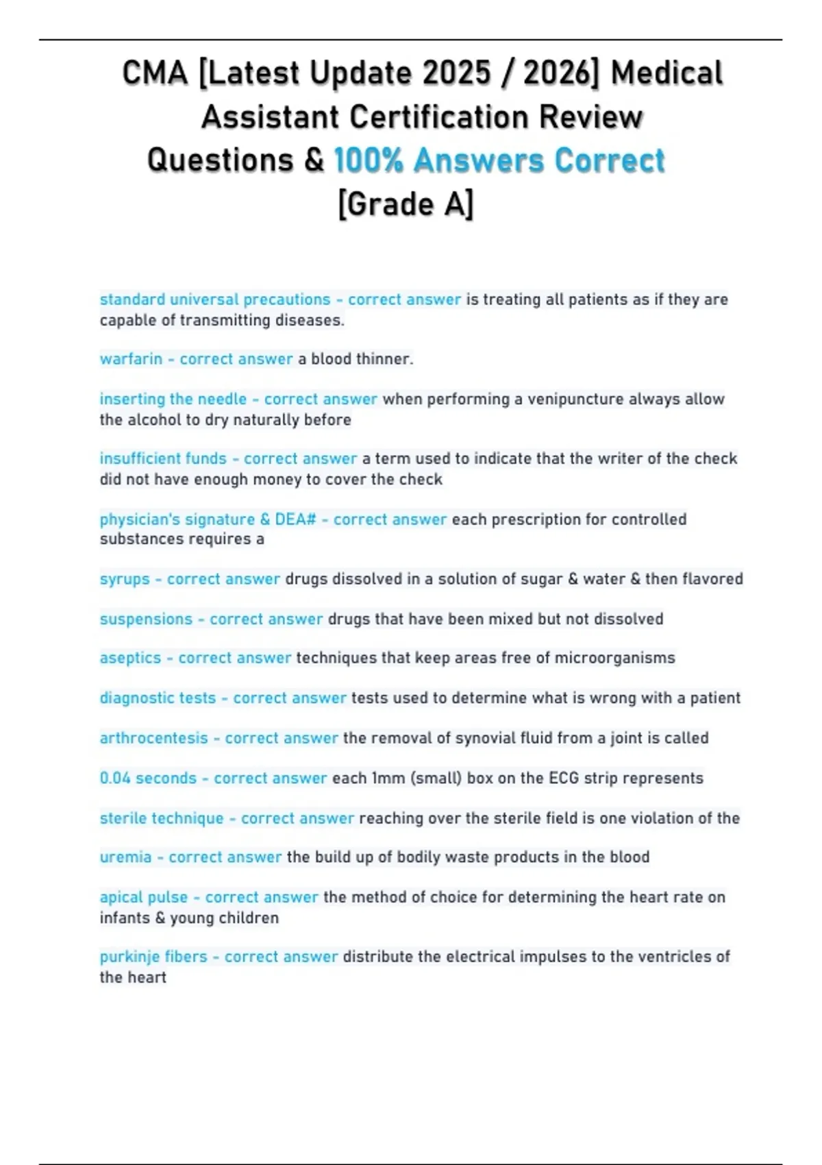 CMA [Latest Update 2025 / 2026] Medical Assistant Certification Review Questions & 100% Answers Correct [Grade A]