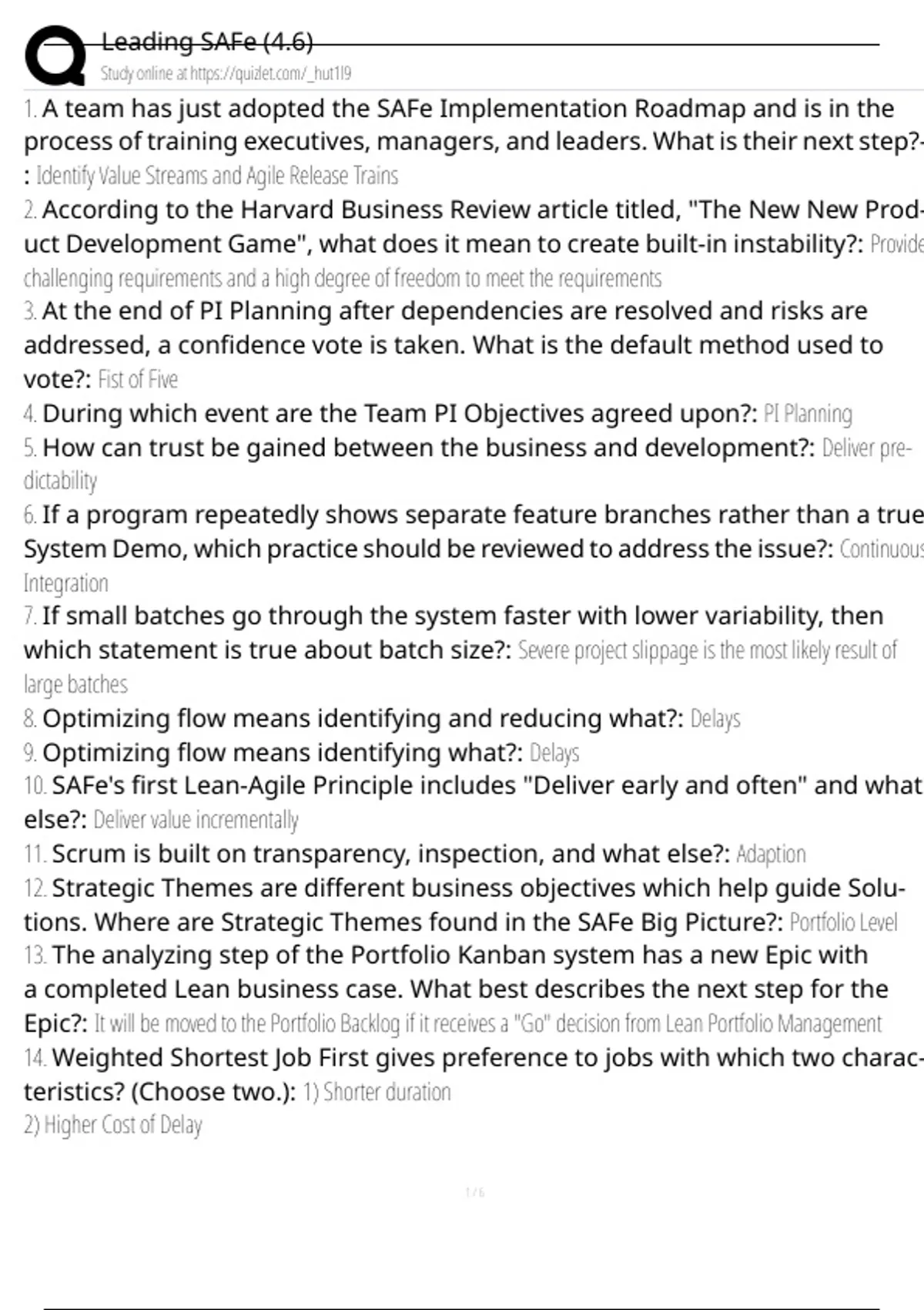 1. A team has just adopted the SAFe Implementation Roadmap and is in the