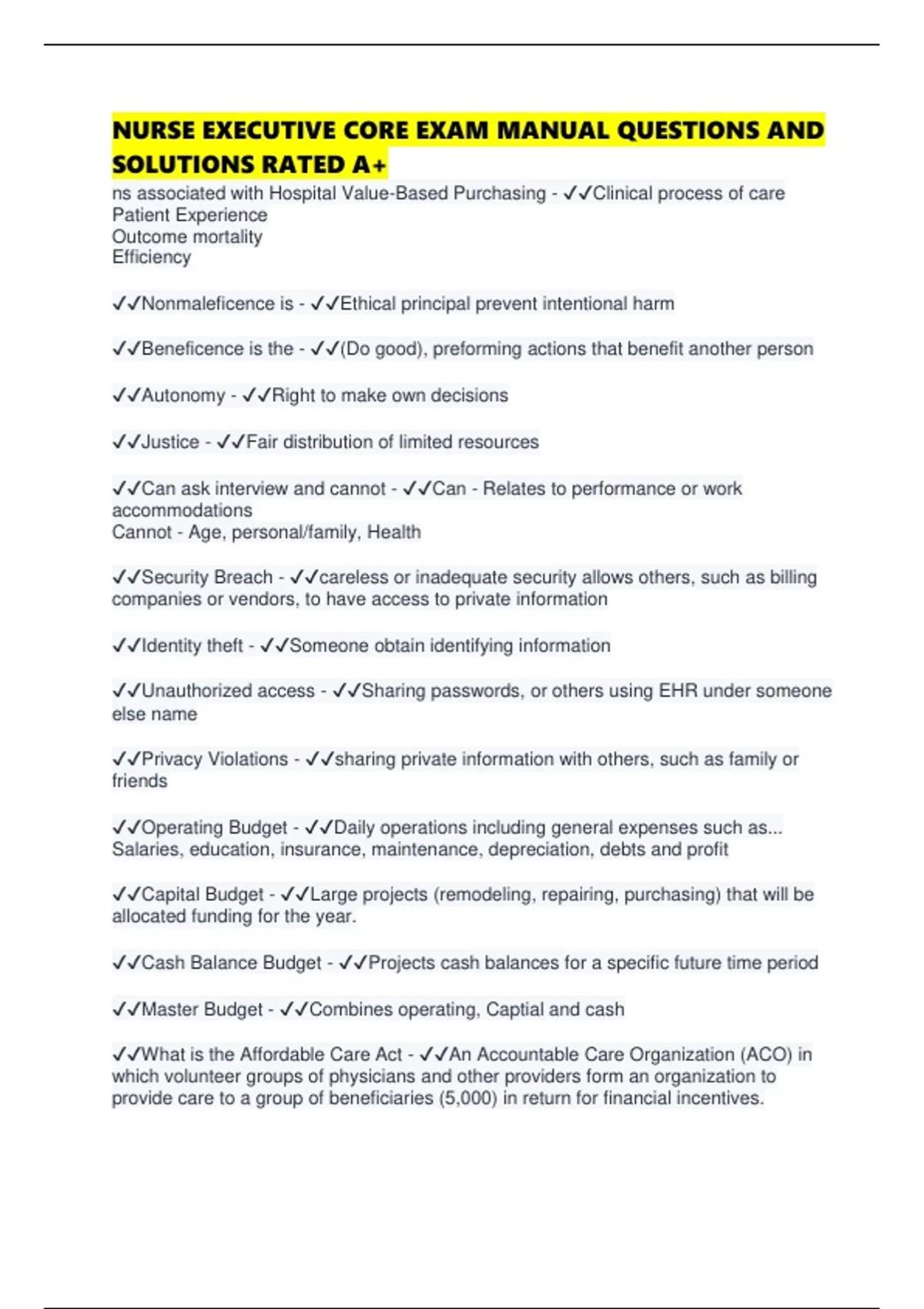 NURSE EXECUTIVE CORE EXAM MANUAL QUESTIONS AND SOLUTIONS RATED A+
