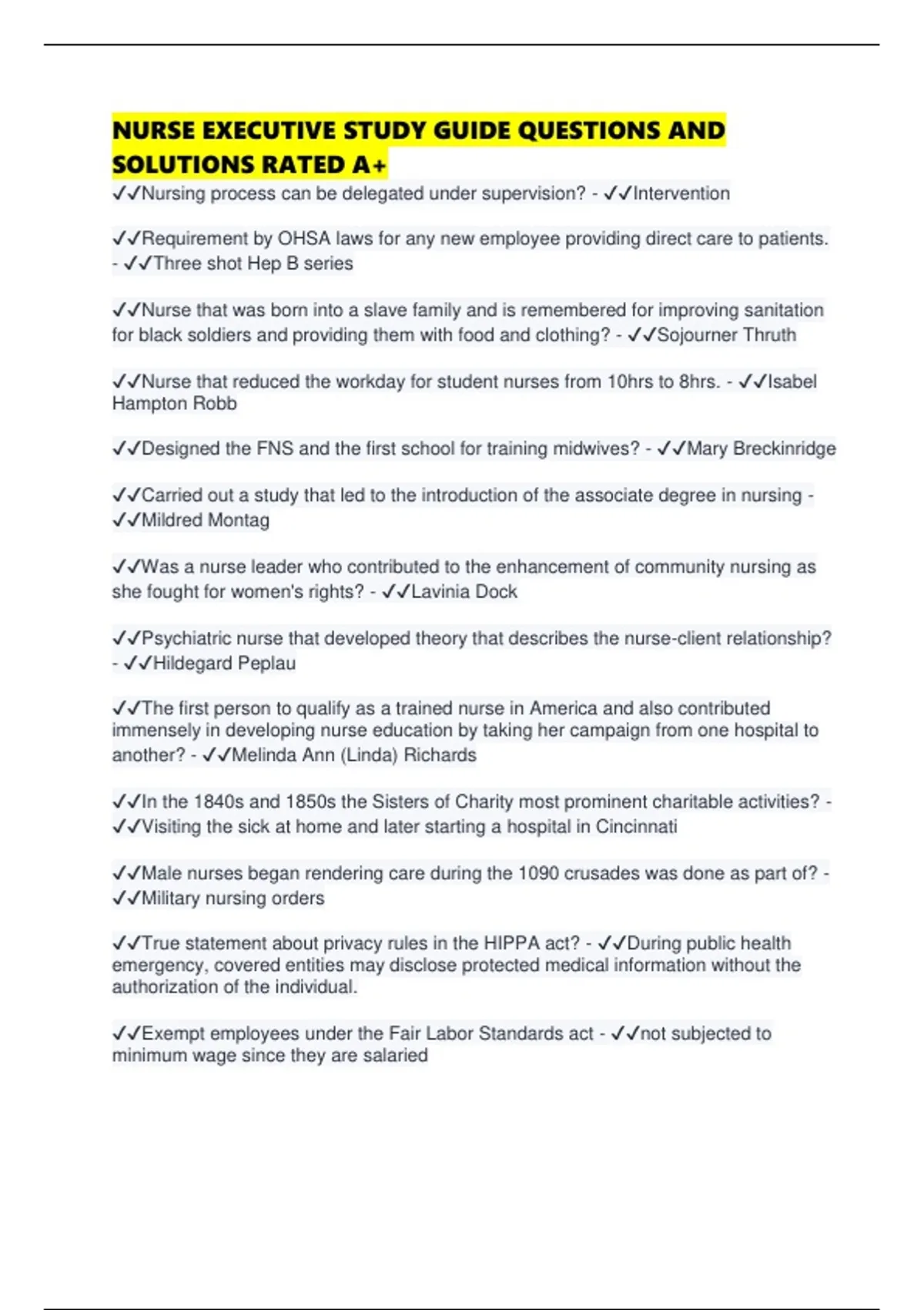 NURSE EXECUTIVE STUDY GUIDE QUESTIONS AND SOLUTIONS RATED A+