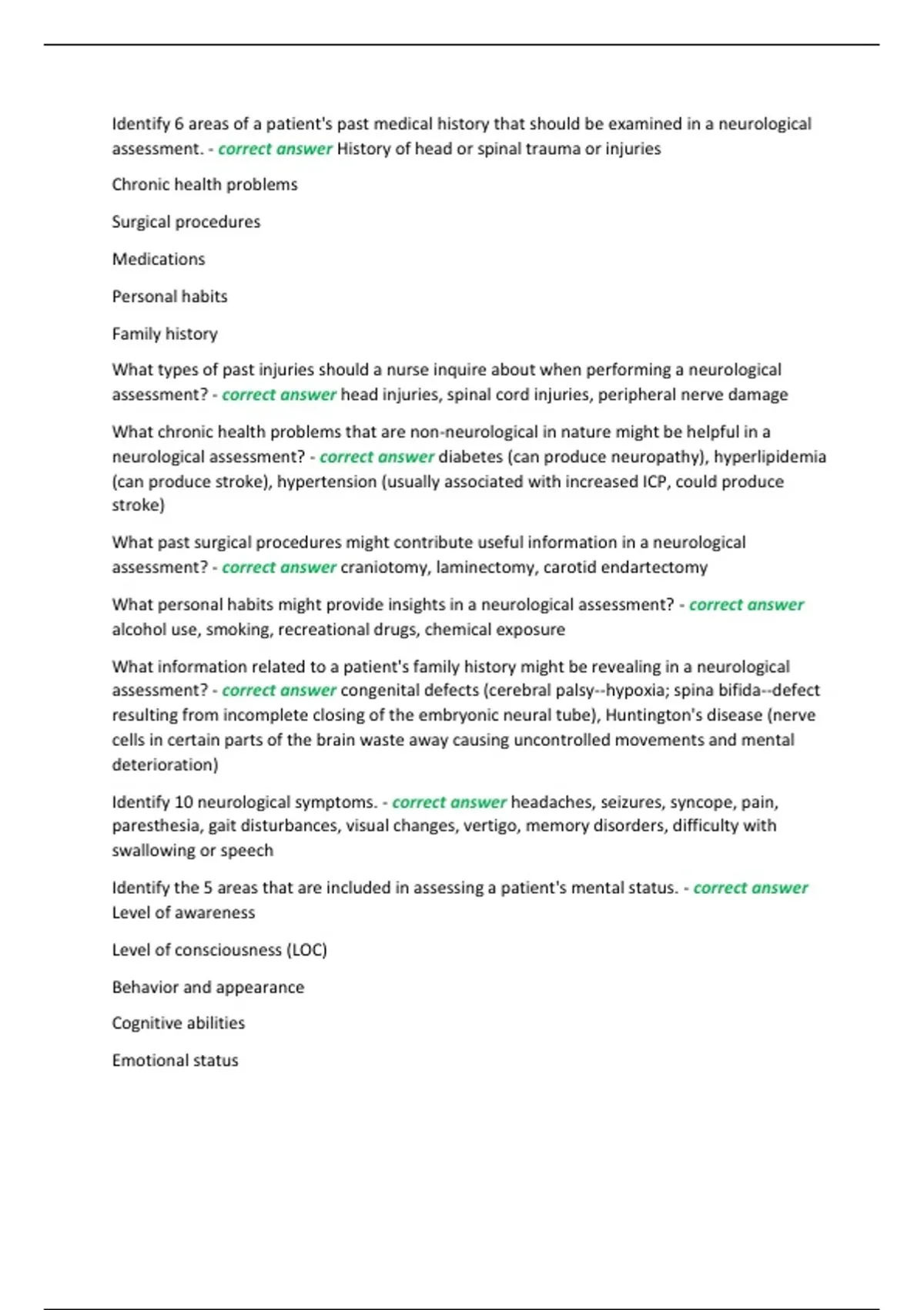 neurological assessment? - correct answer diabetes (can produce neuropathy), hyperlipidemia