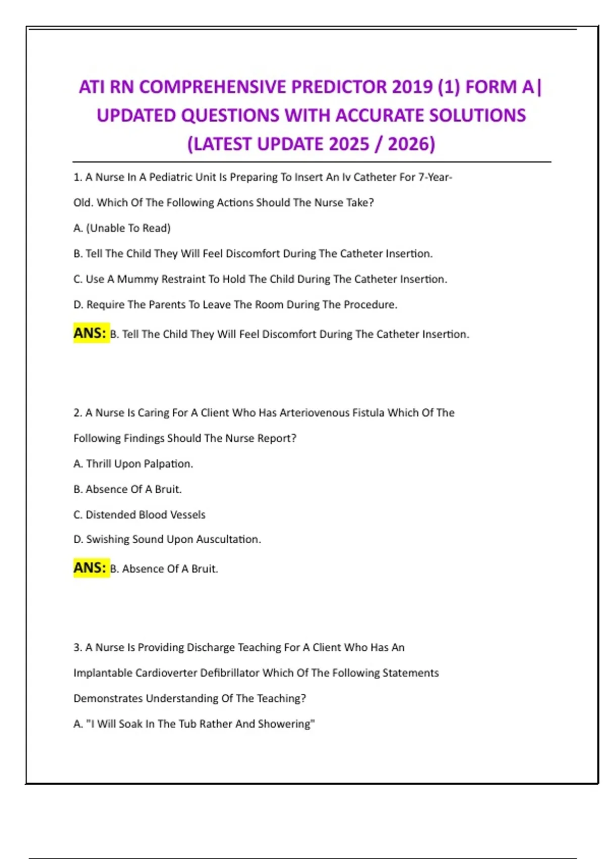 ATI RN COMPREHENSIVE PREDICTOR 2019 (1) FORM A|