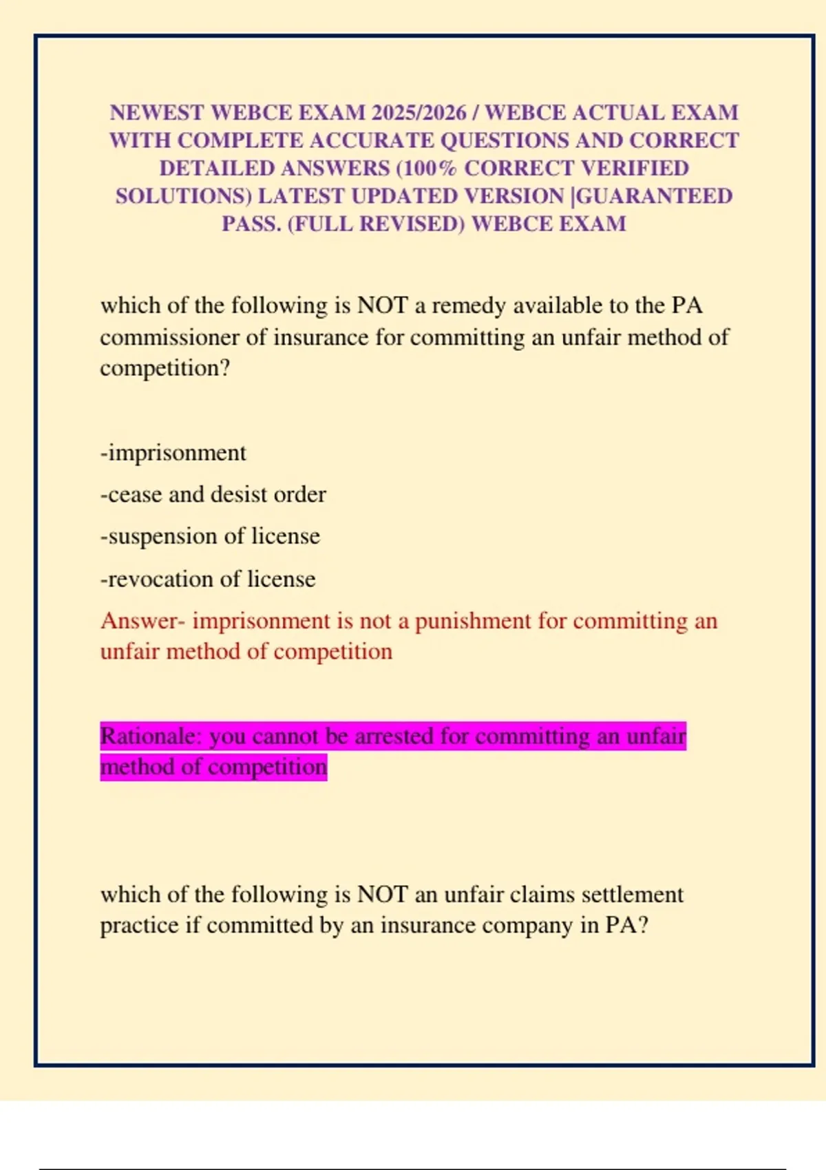 PASS. (FULL REVISED) WEBCE EXAM