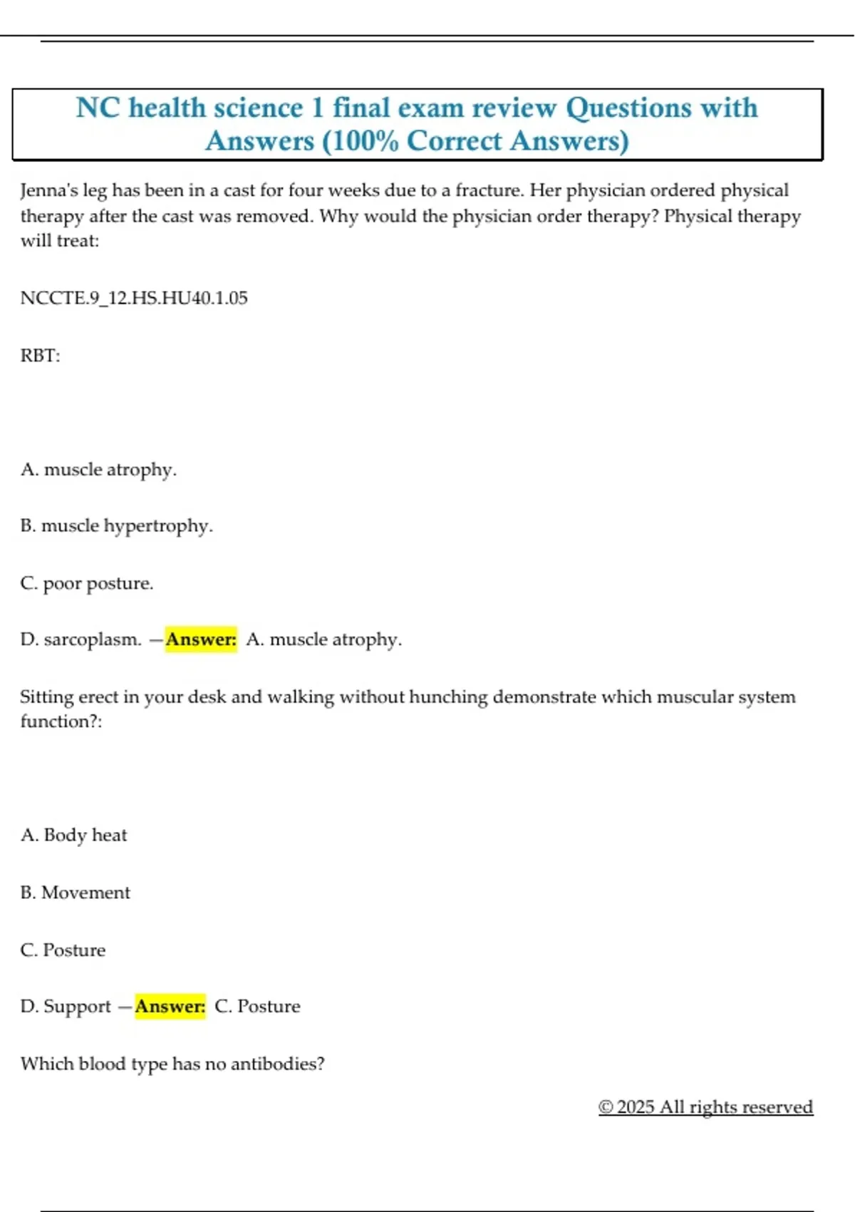 D. sarcoplasm. —Answer: A. muscle atrophy.