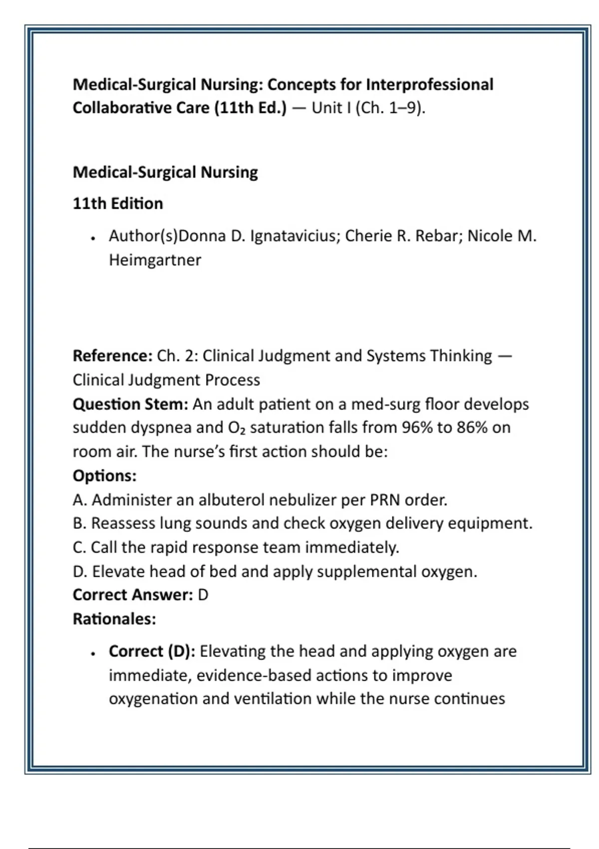 Citation: Ignatavicius et al., 2024, Ch. 2: Clinical Judgment