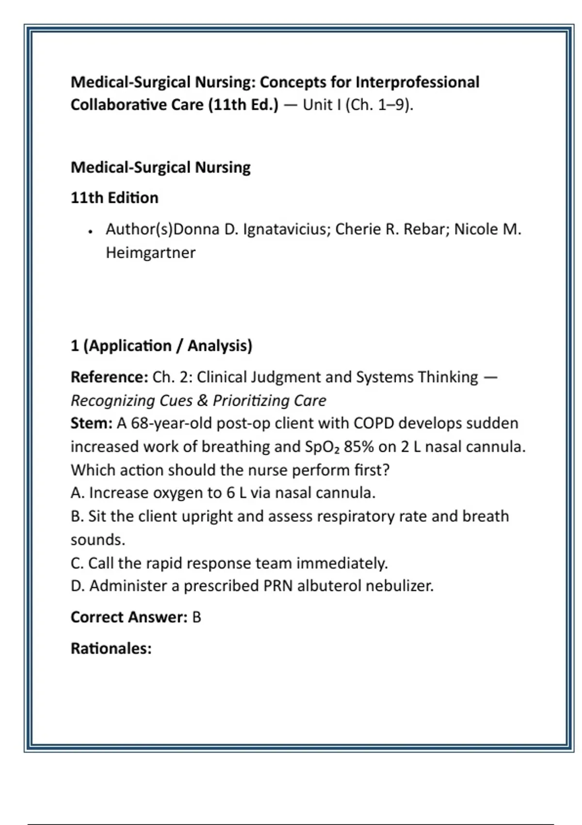 Stem: A 68-year-old post-op client with COPD develops sudden