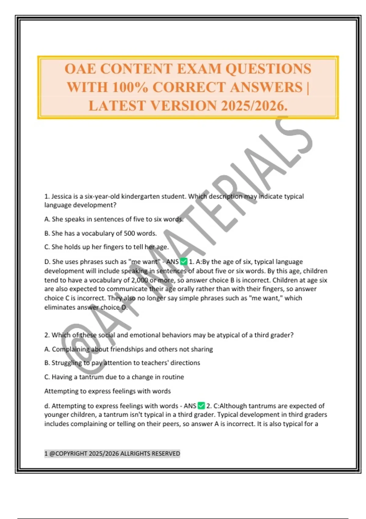 OAE CONTENT EXAM QUESTIONS WITH 100% CORRECT ANSWERS | LATEST VERSION 2025/2026.