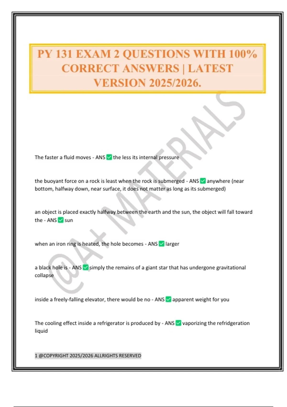 PY 131 EXAM 2 QUESTIONS WITH 100%