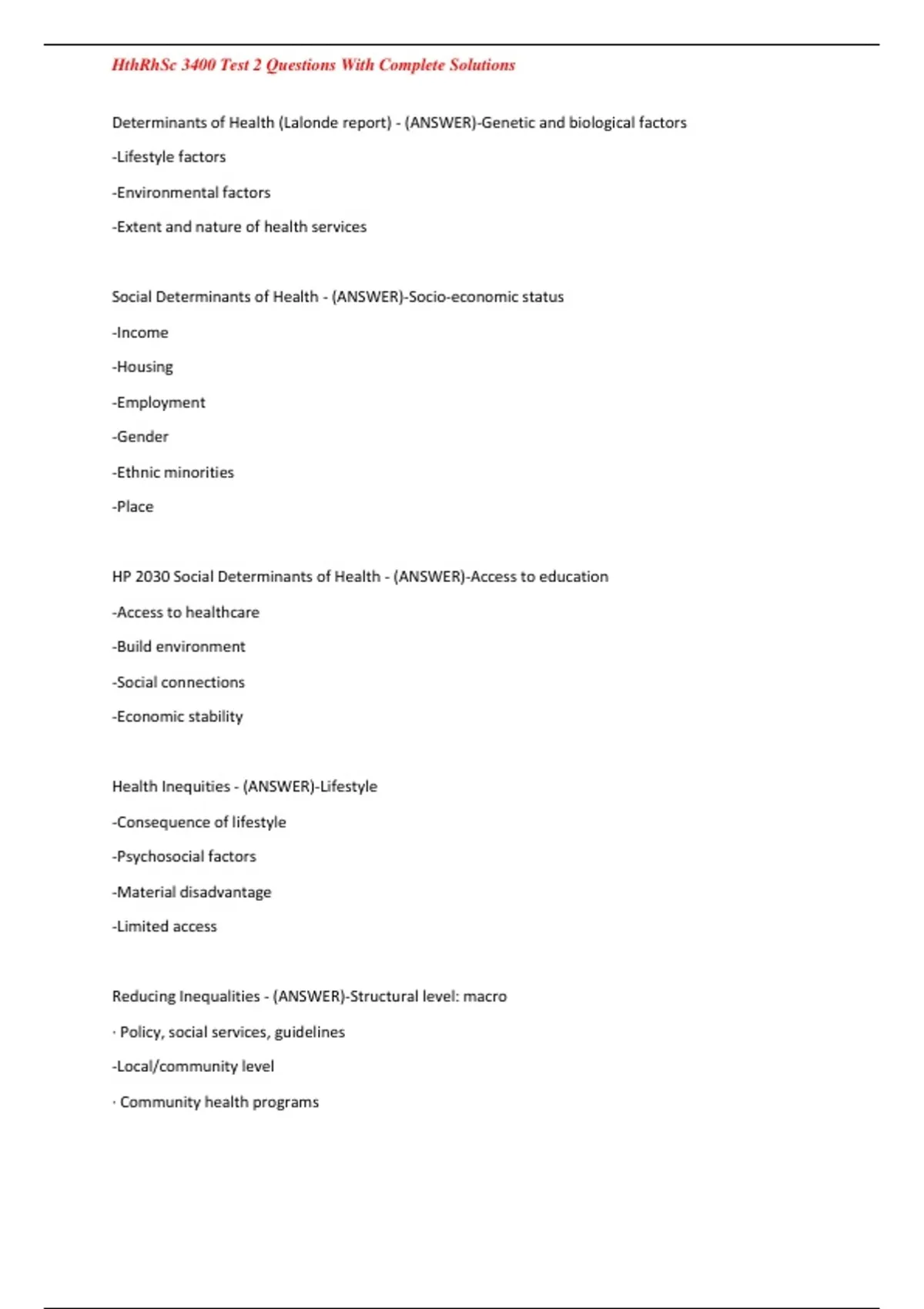 , HthRhSc 3400 Test 2 Questions With Complete Solutions