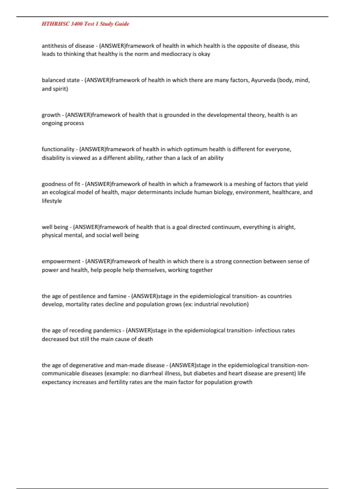 antithesis of disease - (ANSWER)framework of health in which health is the opposite of disease, this