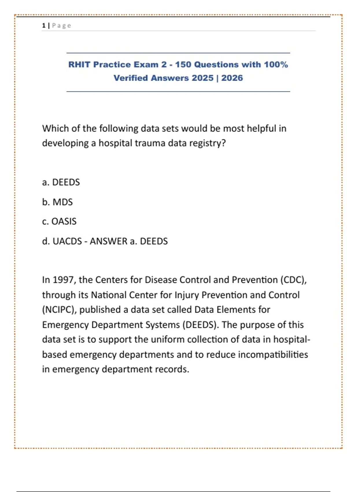 RHIT Practice Exam 2 - 150 Questions with 100%