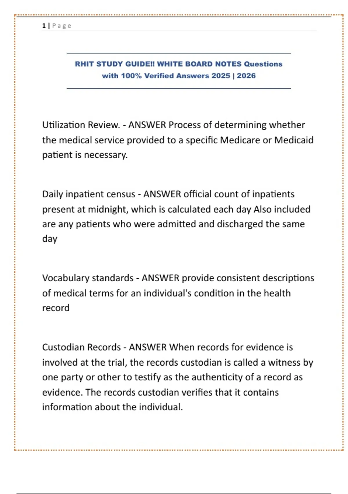 RHIT STUDY GUIDE!! WHITE BOARD NOTES Questions with 100% Verified Answers 2025 | 2026.