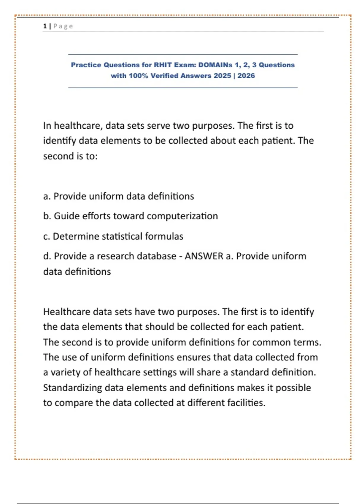 Practice Questions for RHIT Exam: DOMAINs 1, 2, 3 Questions