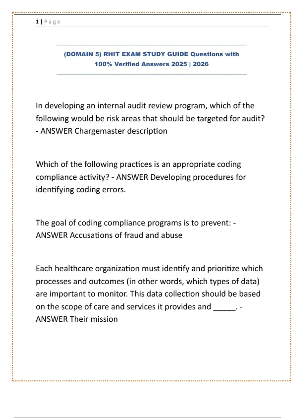 (DOMAIN 5) RHIT EXAM STUDY GUIDE Questions with