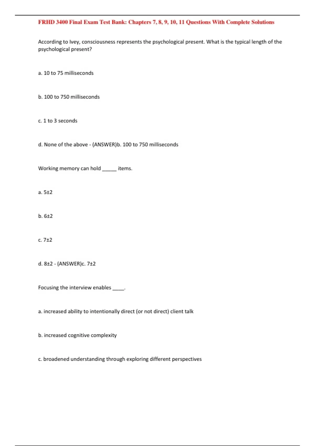 , FRHD 3400 Final Exam Test Bank: Chapters 7, 8, 9, 10, 11 Questions With Complete Solutions