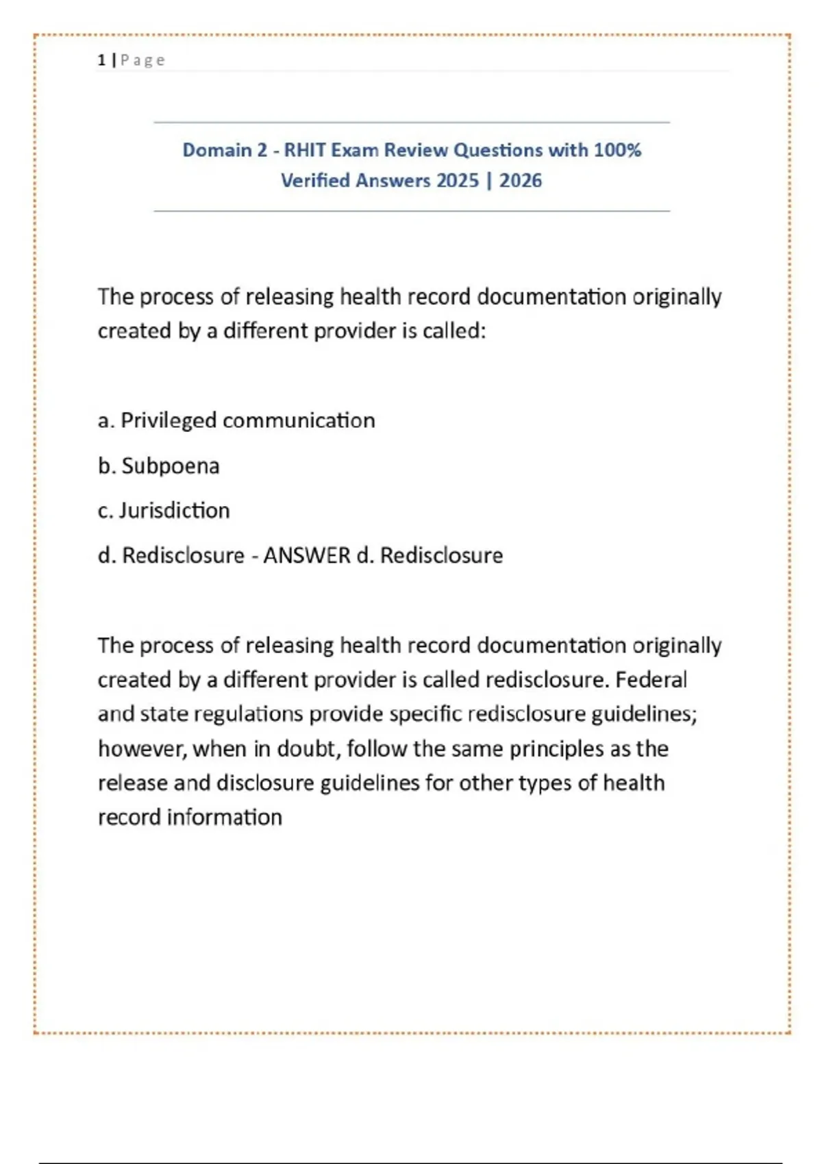 Domain 2 - RHIT Exam Review Questions with 100% Verified Answers 2025 | 2026.