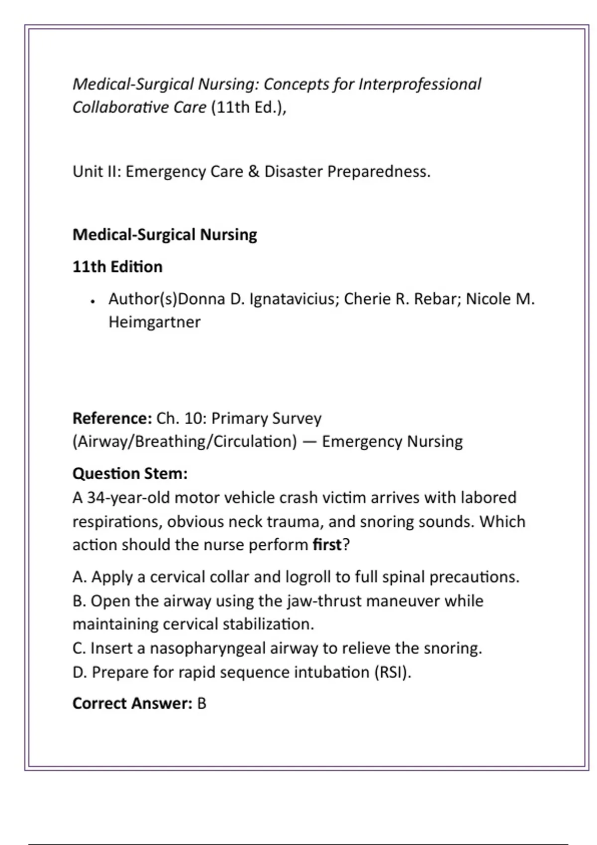 • Correct (B): Jaw-thrust maintains cervical stabilization