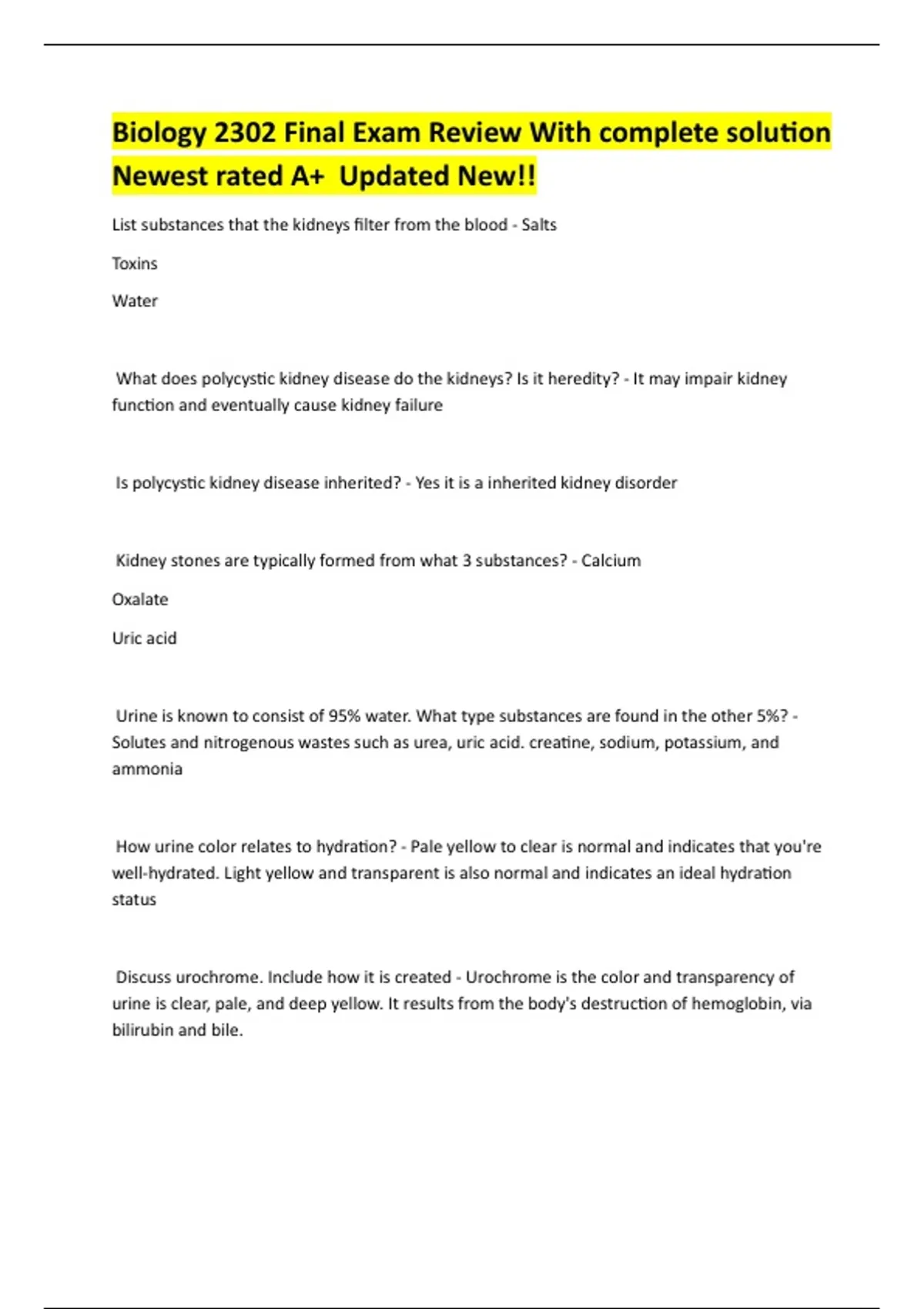Discuss urochrome. Include how it is created - Urochrome is the color and transparency of